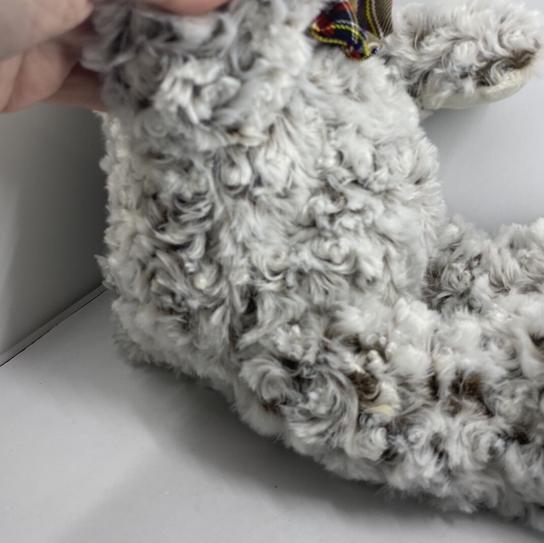 FAO Schwarz Teddy Bear Stuffed Animal Plush Gray Curly Fur Plaid BowTie 18 2017