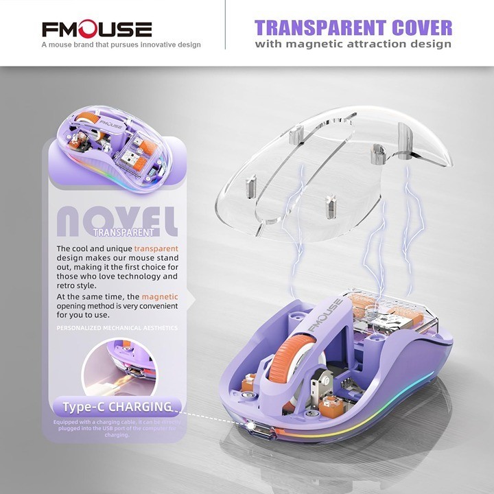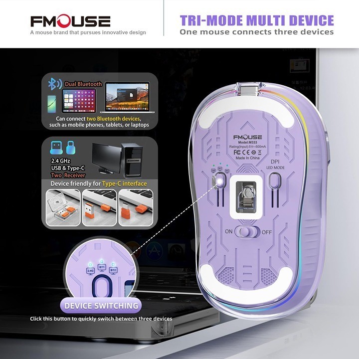 MOUSE Stunning Transparent Wireless Mouse, Dual Bluetooth Purple
