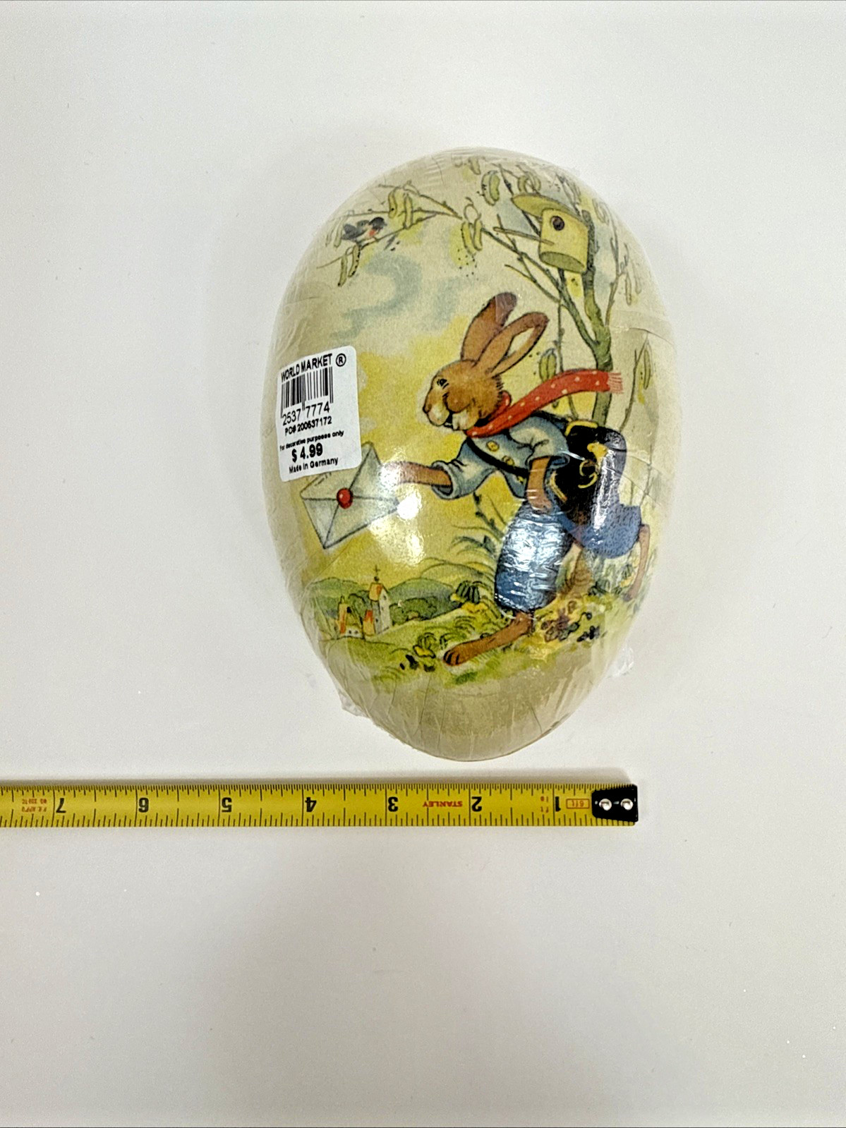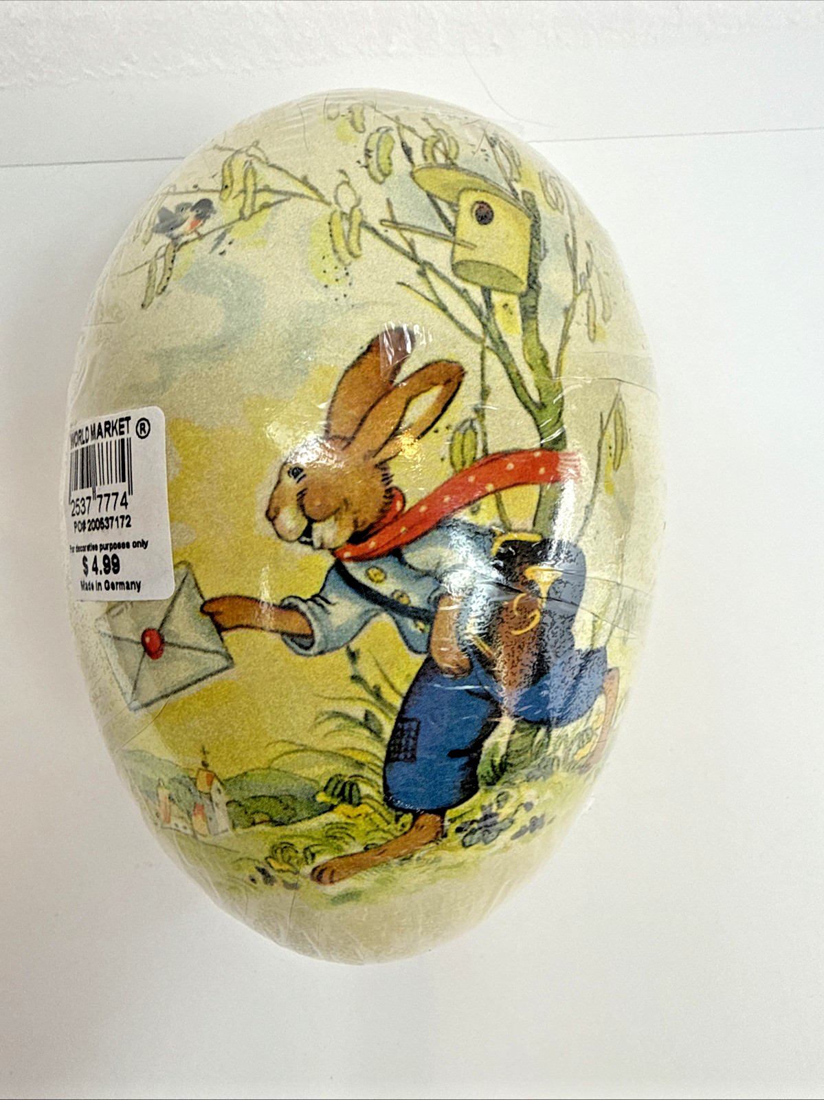 NEW Vintage German Nestler 6" Egg Paper Mache Easter Bunny Delivering Mail