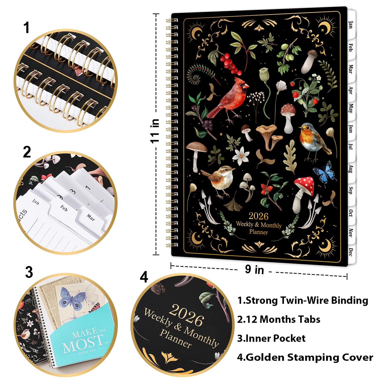 2026 Planner - Planner 2026, 9 x 11, Jan 2026 - Dec 2026, 2026 Weekly Month...