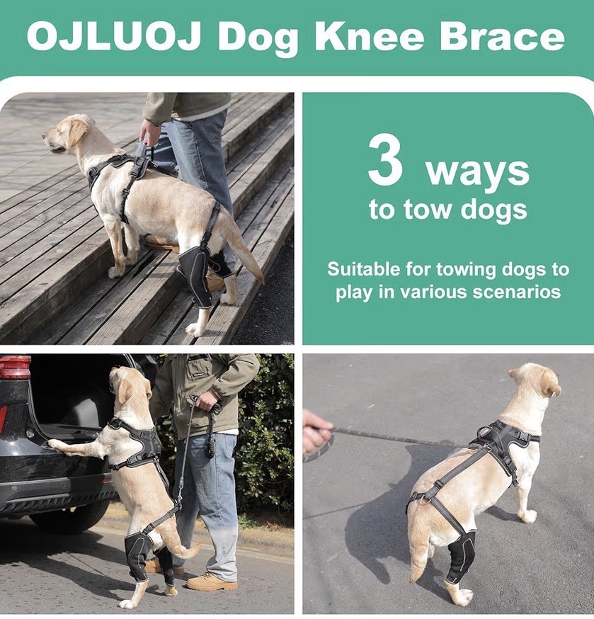 OJLUOJ Dog Hip Brace Support for ACL Luxating Patella with Traction Rope, 4 Limb