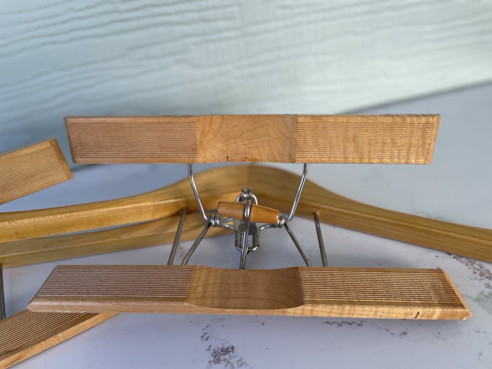 как выглядит Lot of 2 Setwell 18" Heavy Duty Wooden Suit Hangers фото