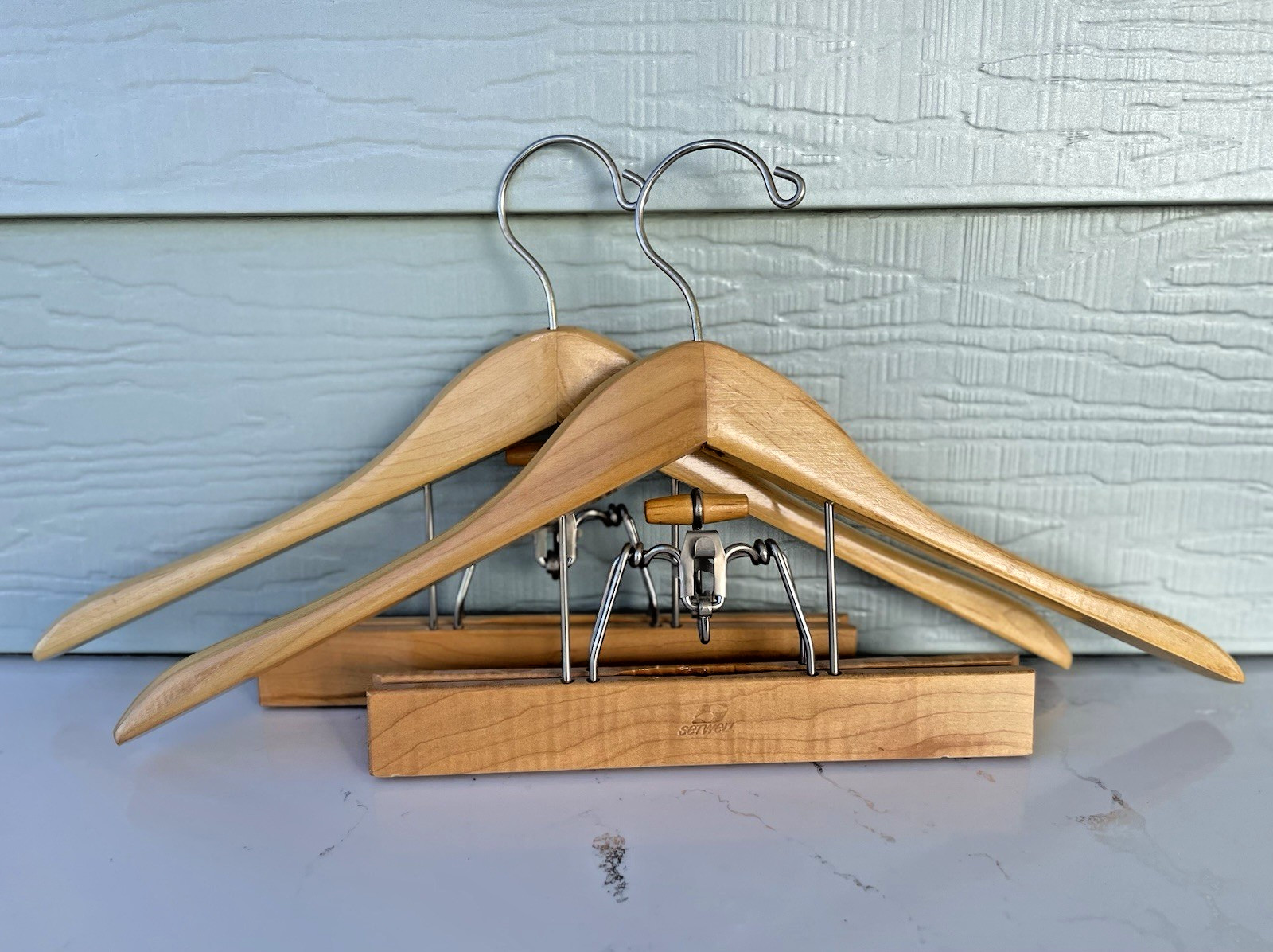 Lot of 2 Setwell 18 Heavy Duty Wooden Suit Hangers