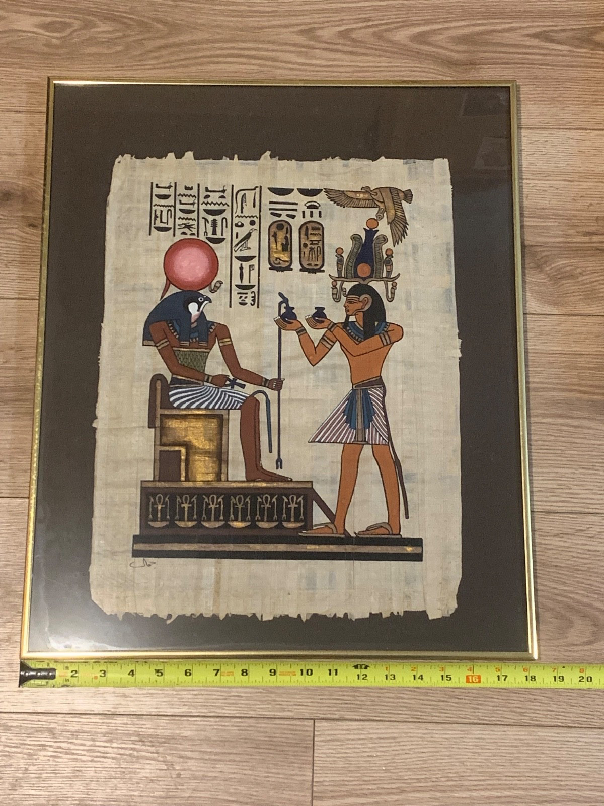как выглядит Hand-Painted Egyptian Papyrus Art Pharaonic Offering Scene Horus Ra фото