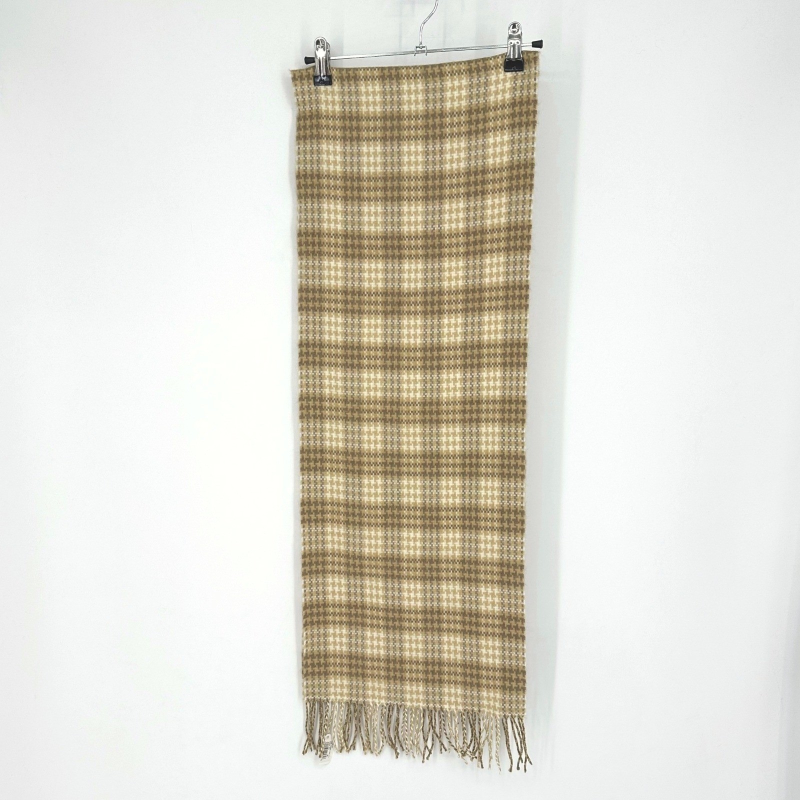 NWT Scottish 100 Cashmere Houndstooth Plaid Scarf Made in Scotland Tan Brown