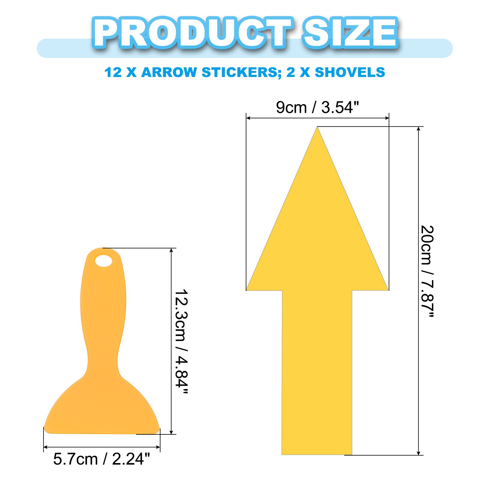 8 x 4 Arrow Sticker, 12Pcs Floor Stickers with Shovel, Yellow