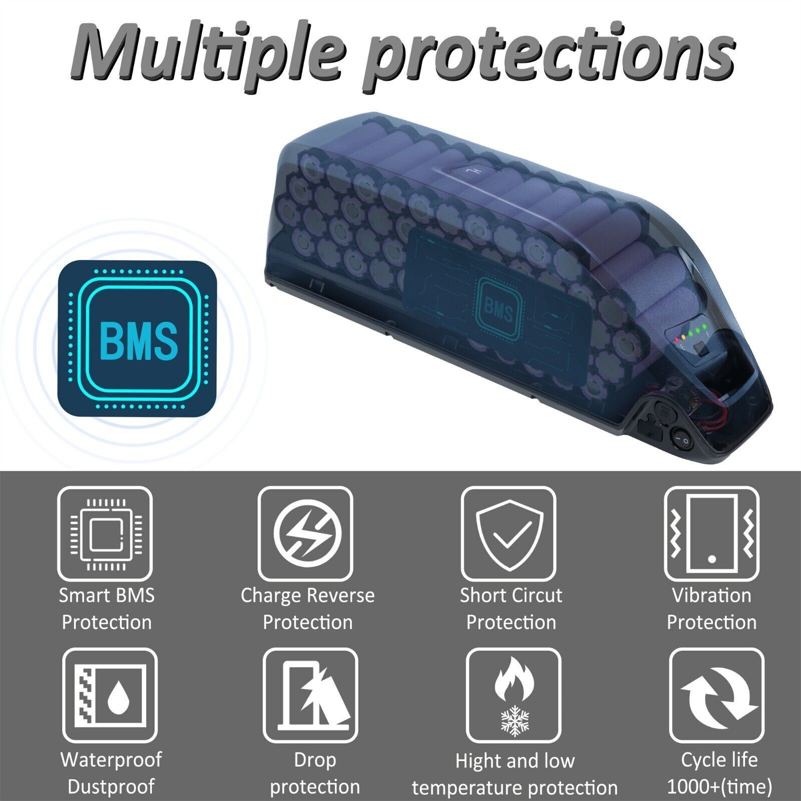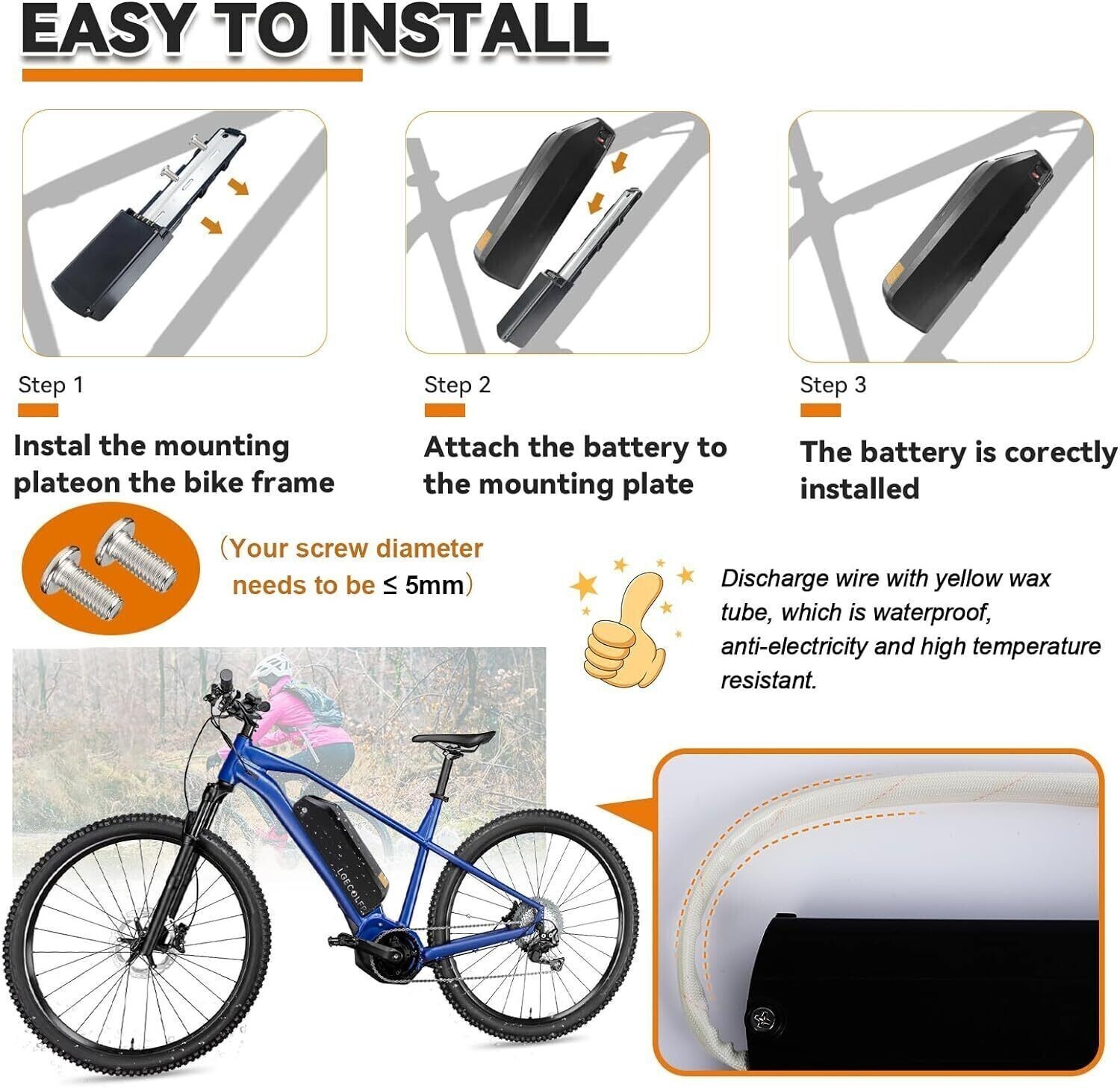 Set Includes: 1 x Battery Fix Plate /Frame mount With Discharging Line, 1 x BMS, 1 x Female XT60 Connector, 1 x Hailong Battery, 1 x Male XT60 Connector, 2 x Keys, 4 x Screws(One spare), Bottom Bracket
