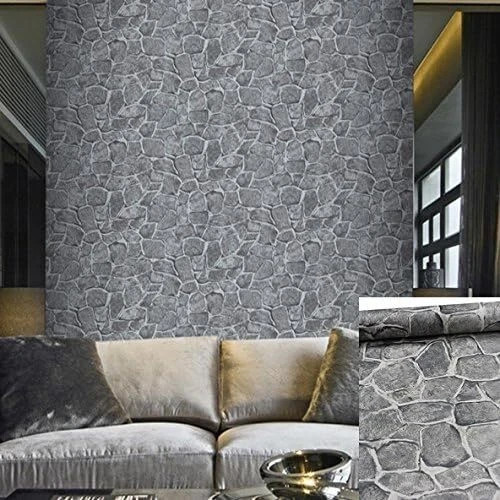 11 Yards Stone Wallpaper 17.7Wx394L 48.8 Square ft , Dark Grey Fortress