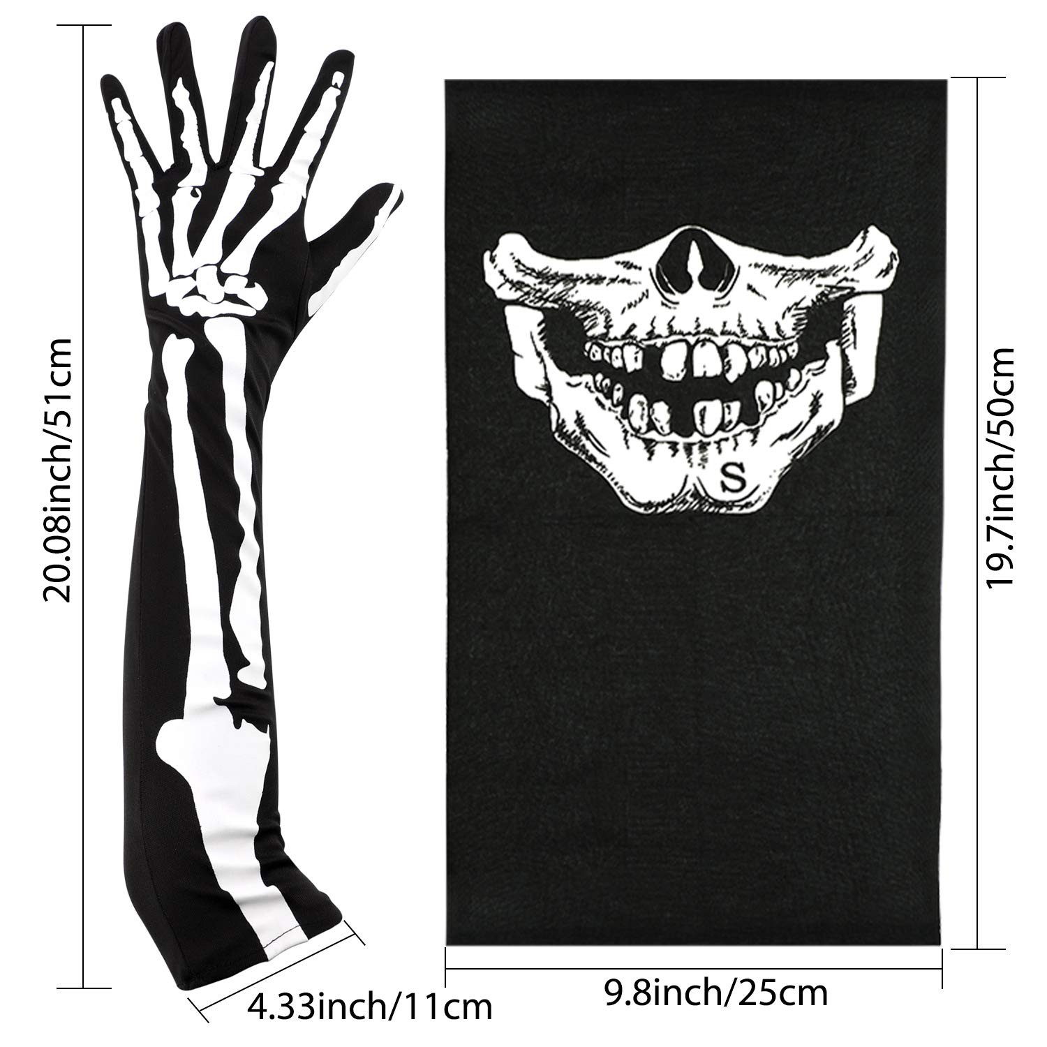Tatuo Halloween Skeleton Gloves Skull Mask Half Face Full Style A, 1 Set