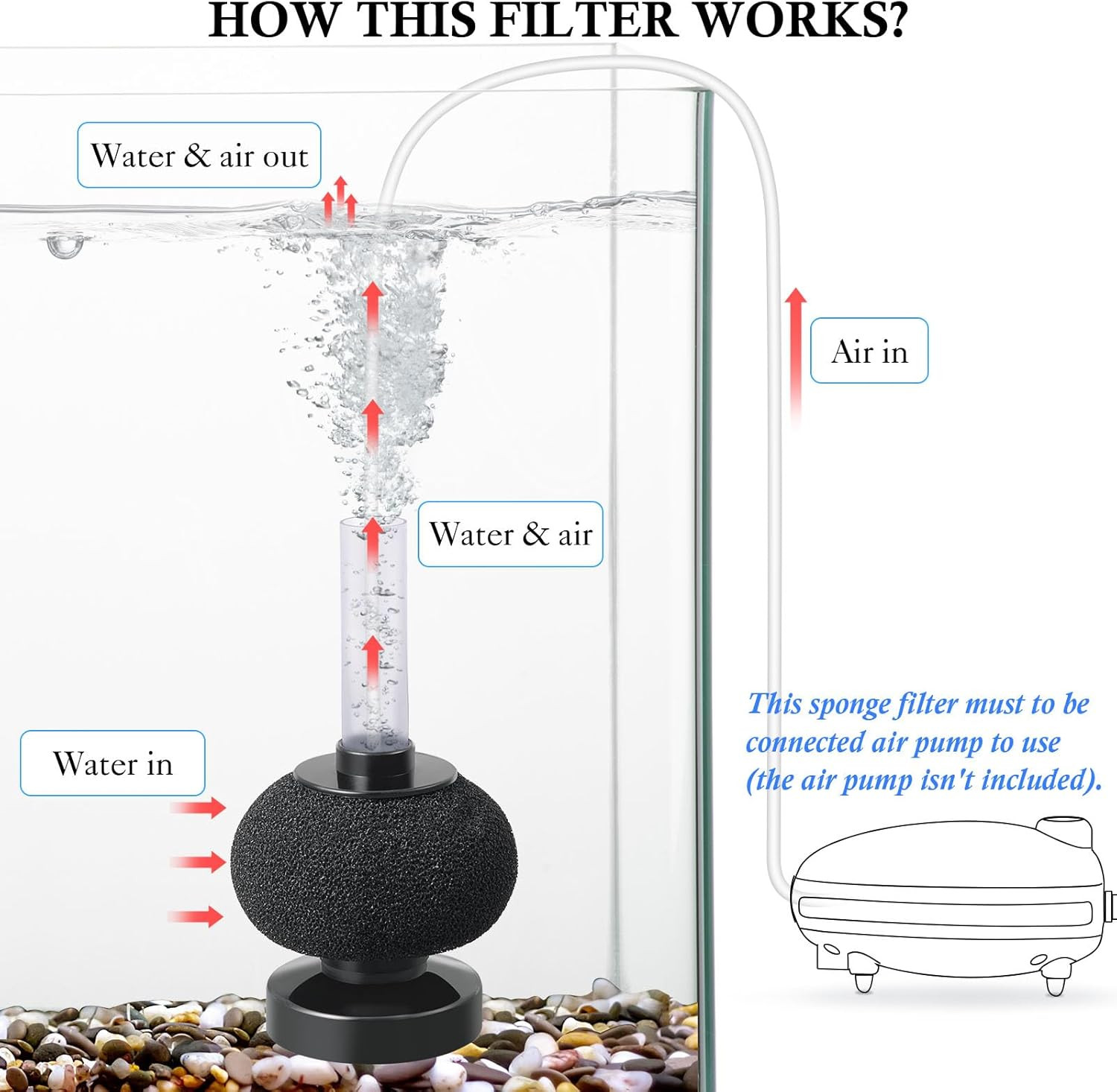Directions: This sponge filter needs to be connected to an air pump to use. T