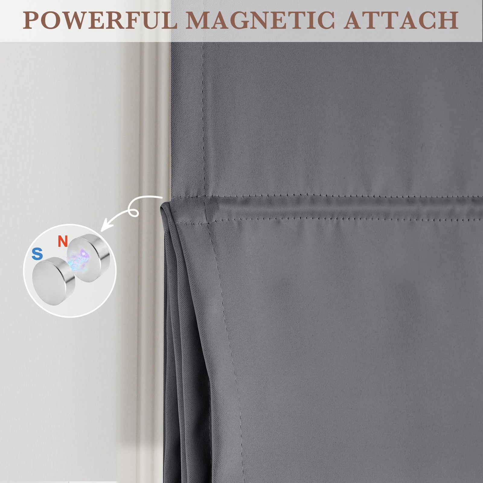 RYB HOME Magnetic Blackout Door Curtain for 26W x 69L Pack of 1 , Grey