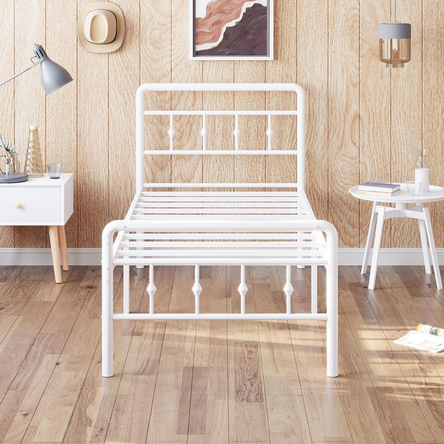 как выглядит Tall Twin Bed Frames with Headboard and Footboard, Heavy Duty Metal Platform ... фото