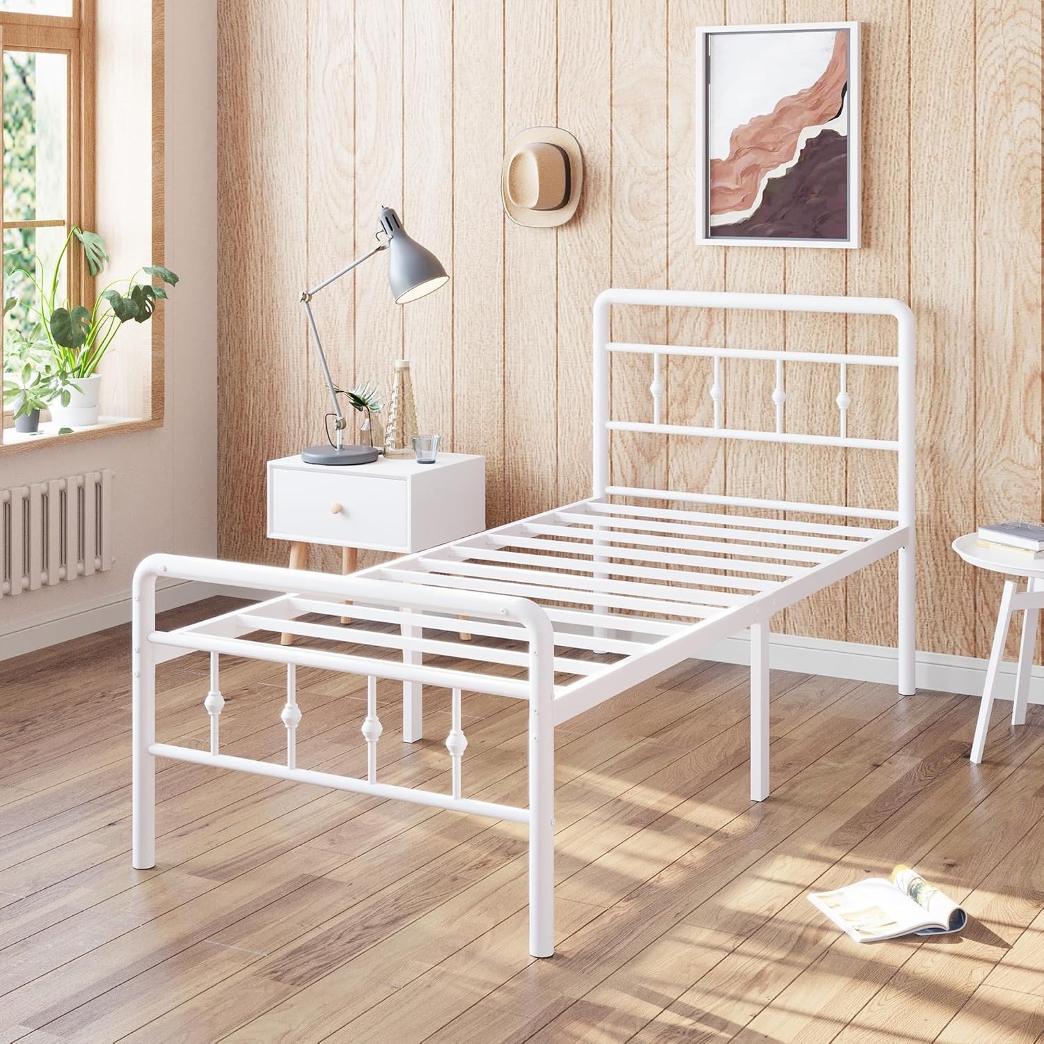 Tall Twin Bed Frames with Headboard and Footboard, Heavy Duty Metal Platform ...