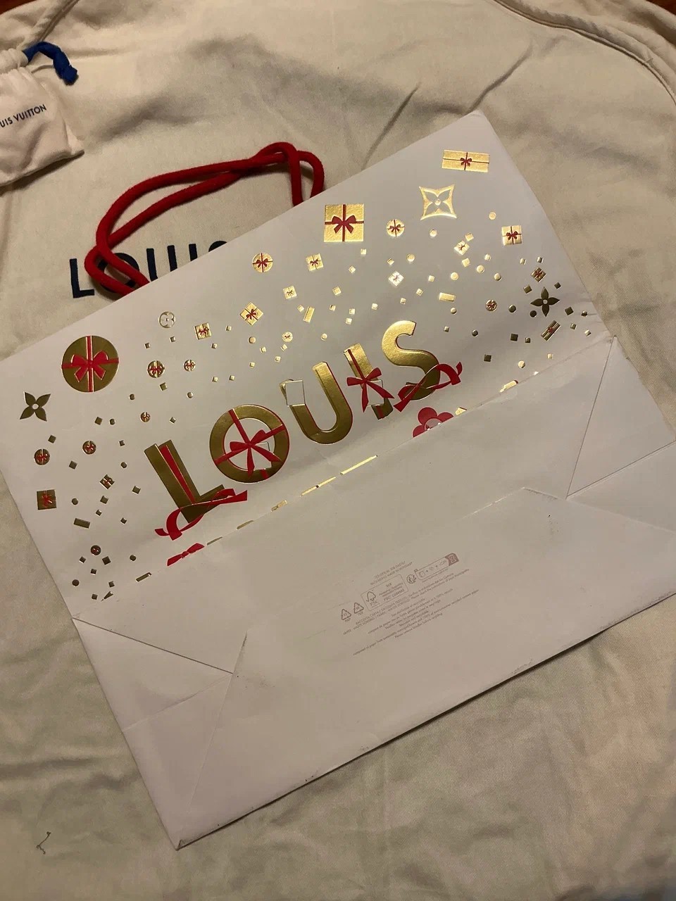 как выглядит LOUIS VUITTON 2023 Xmas Edition 15.6 X 13.2 X 6.2 Large Gift Shopping Paper Bag фото