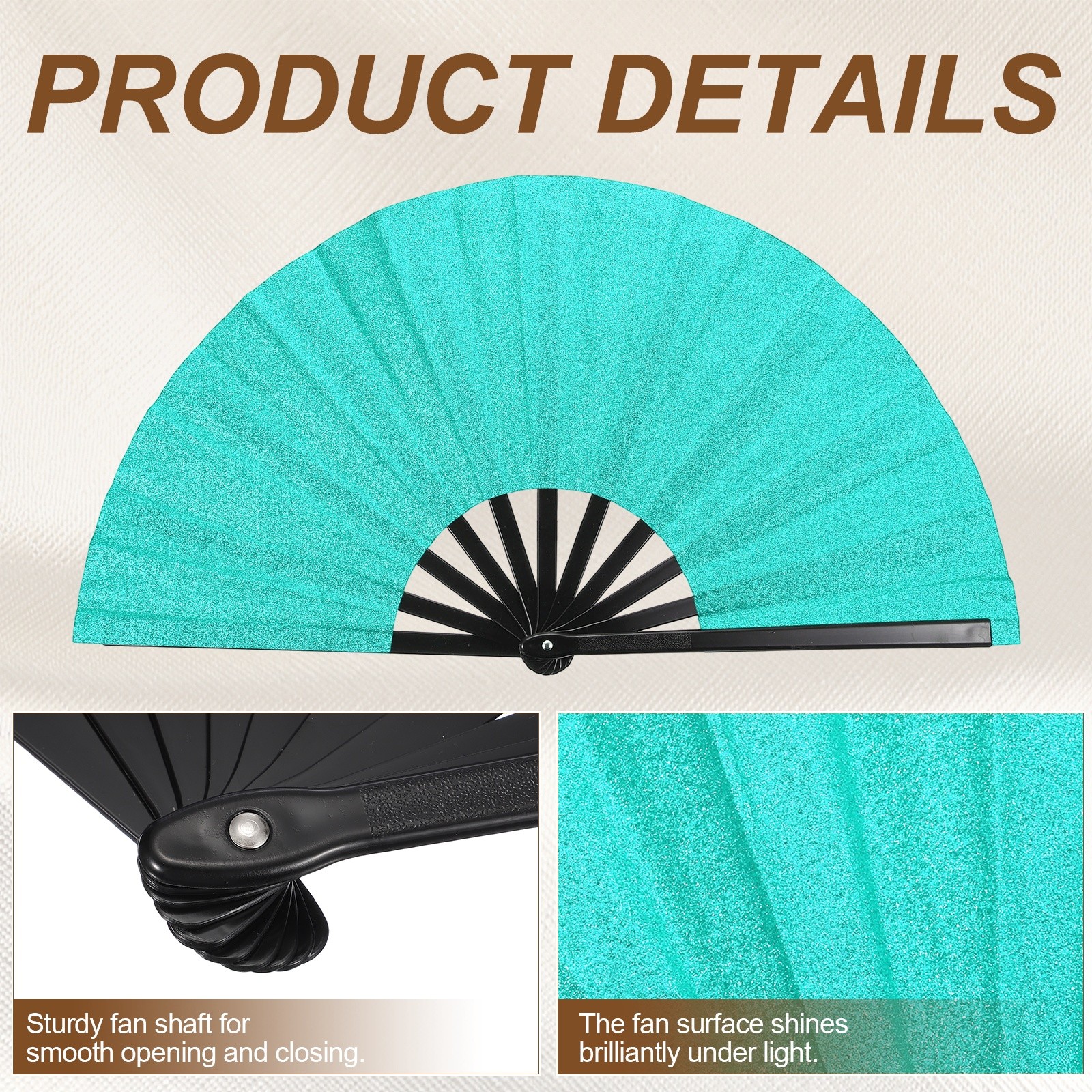 Large Folding Fans for Line Dancing,2Pcs 12.6 Glitter Sky Blue/Black