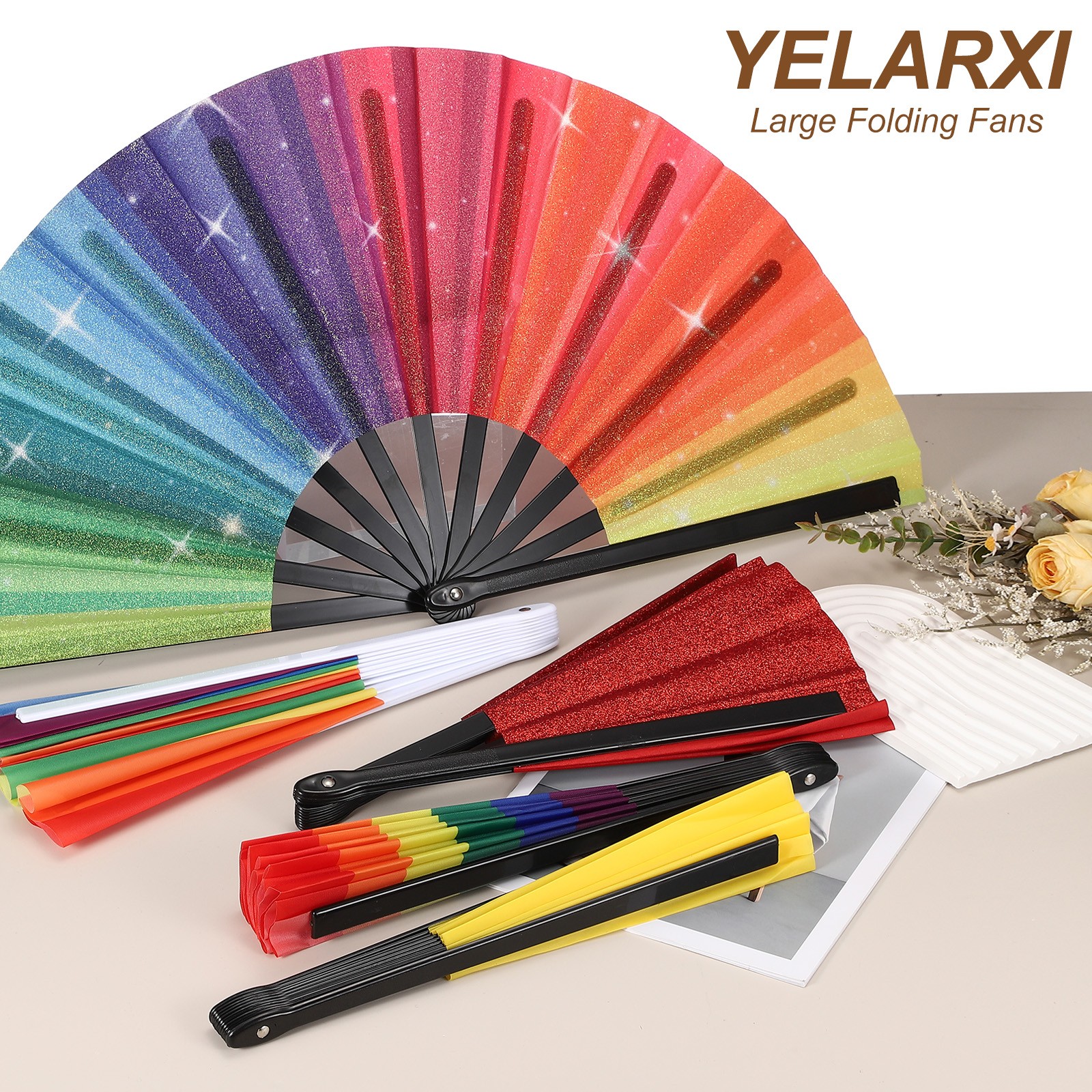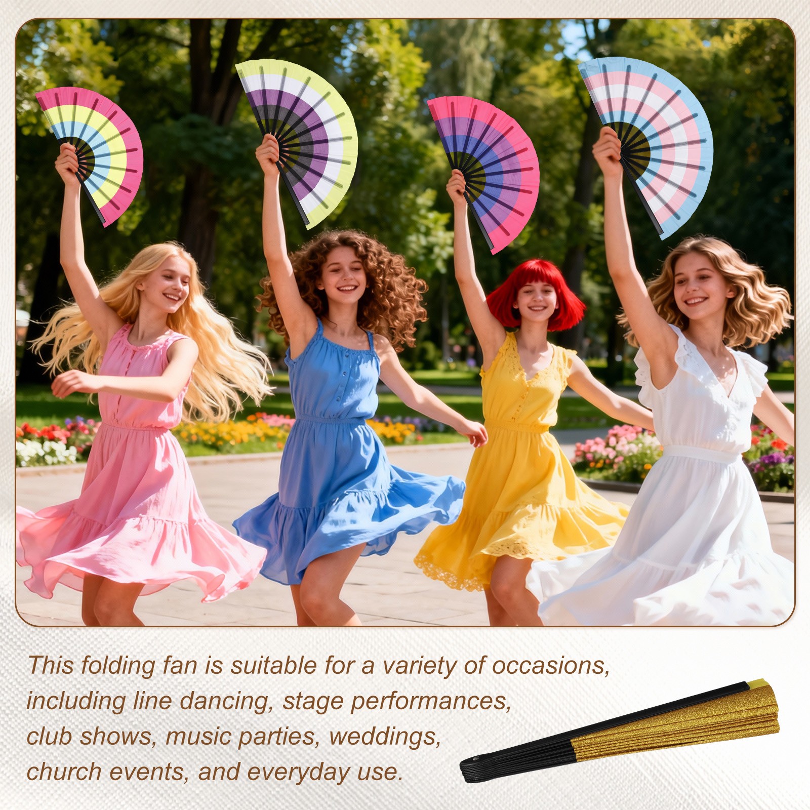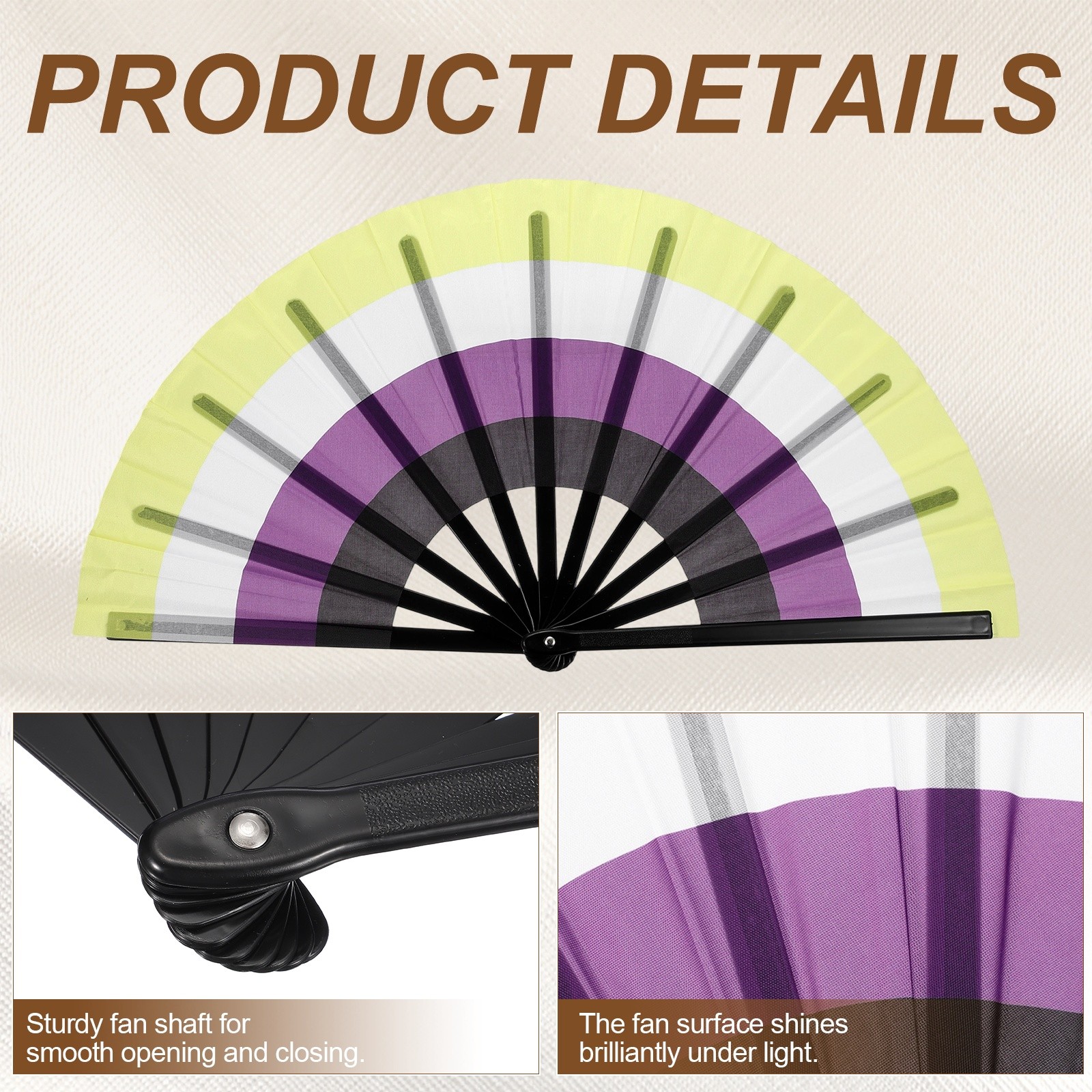 Large Folding Fans for Line Dancing,2Pcs 12.6 Stripes Yellow-Purple/Black