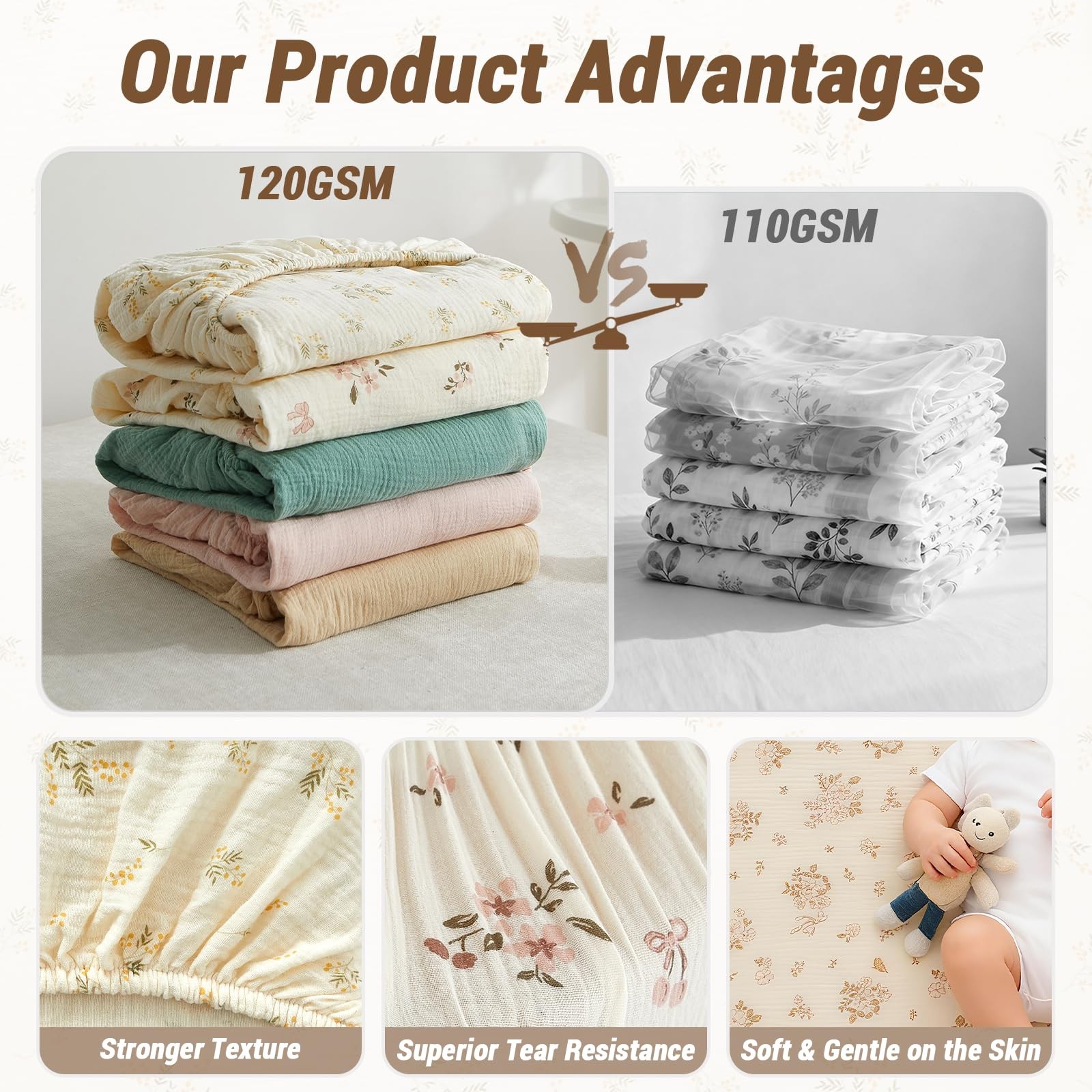Heavyweight Muslin Baby Crib Sheets - 2PCS 52x28 Neutral Fitted Crib Sheets...
