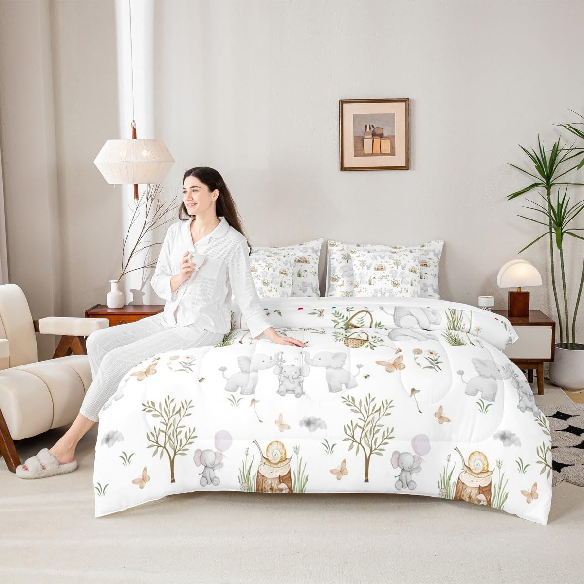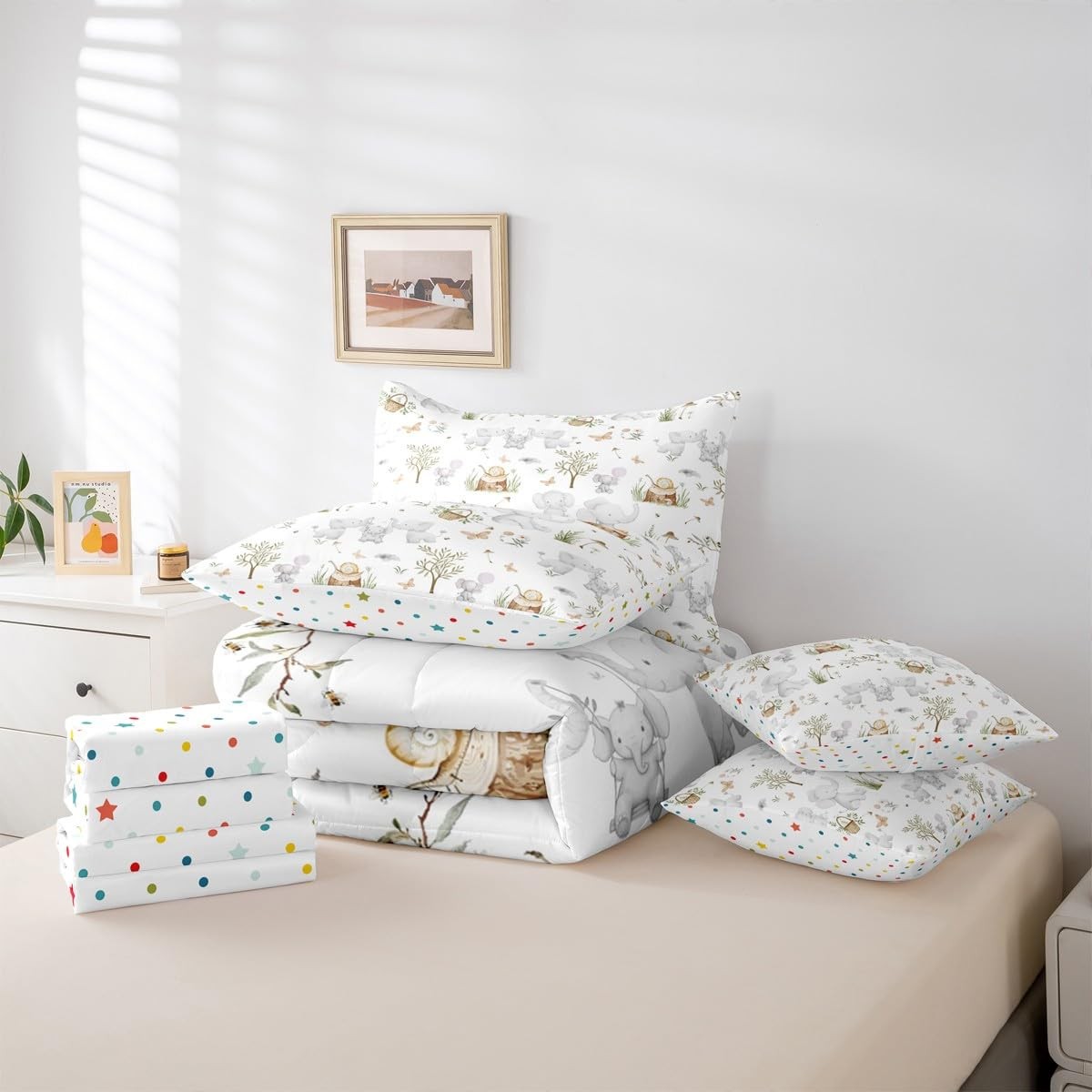 Elephant Twin 7 Piece Comforter Set for Boys Girls Nursery Cute Cartoon Anima...