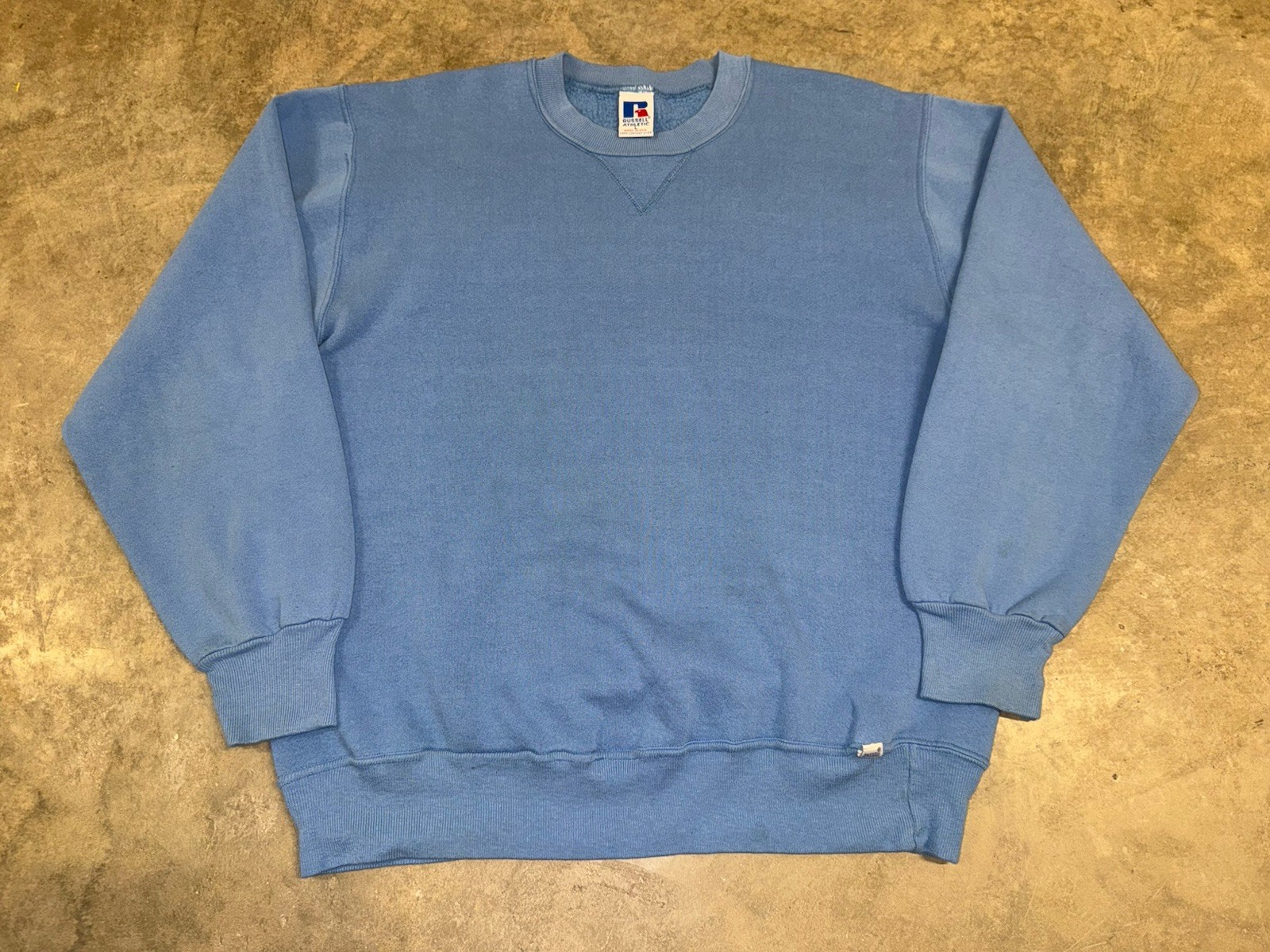 Vintage Russell Athletic Crewneck Sweatshirt Mens M/Lg Light Blue Blank USA Made