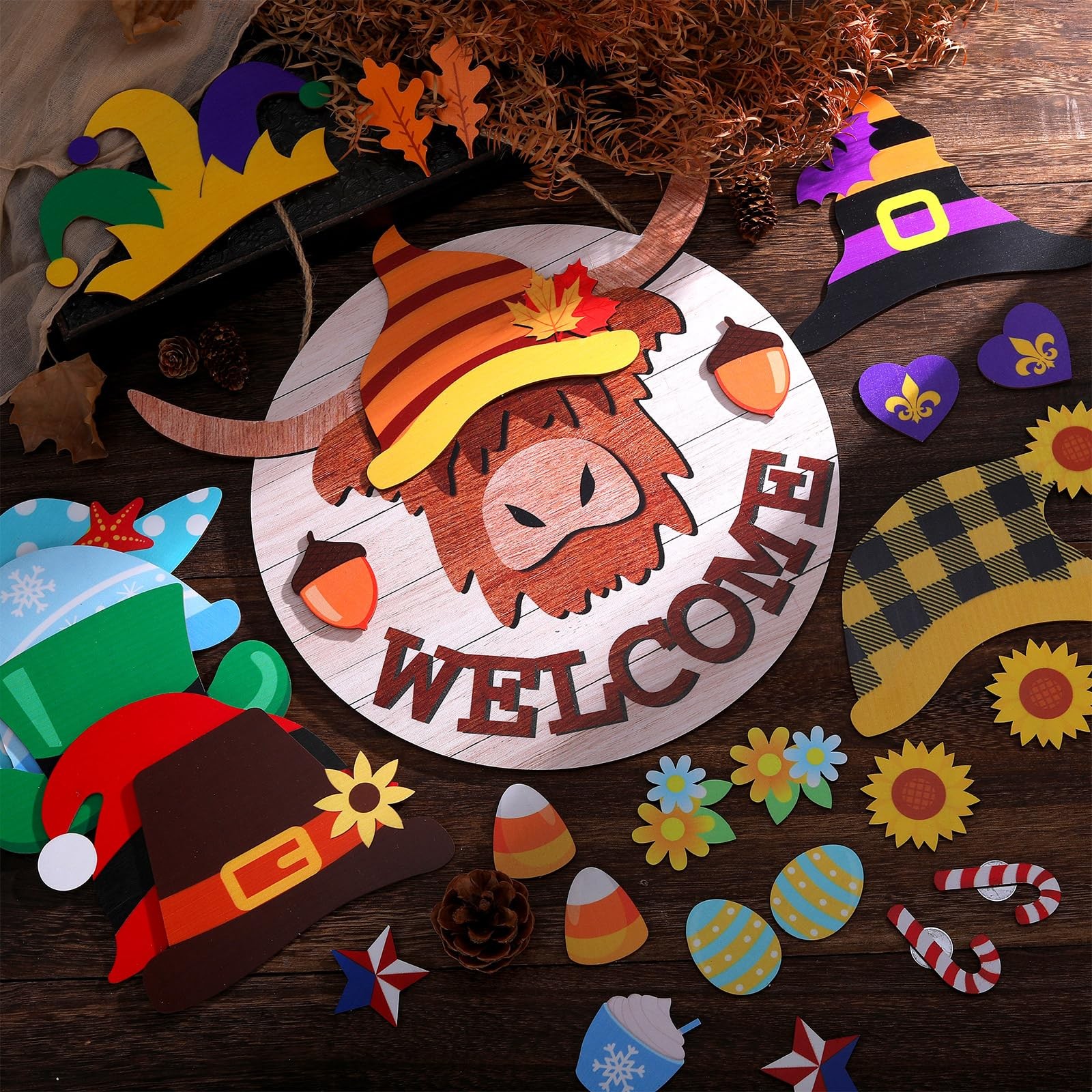 как выглядит 13 Set Interchangeable Highland Cow Welcome Sign 11.8 Inch Valentine
