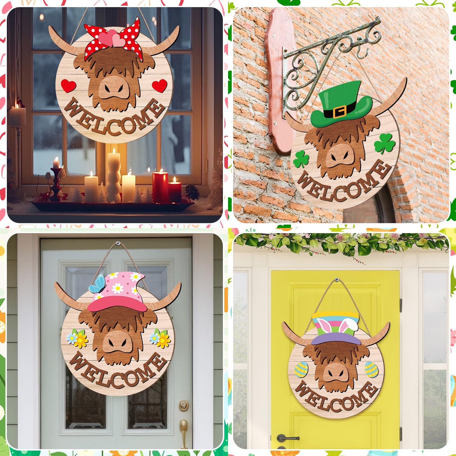 13 Set Interchangeable Highland Cow Welcome Sign 11.8 Inch Valentine's Day Co...