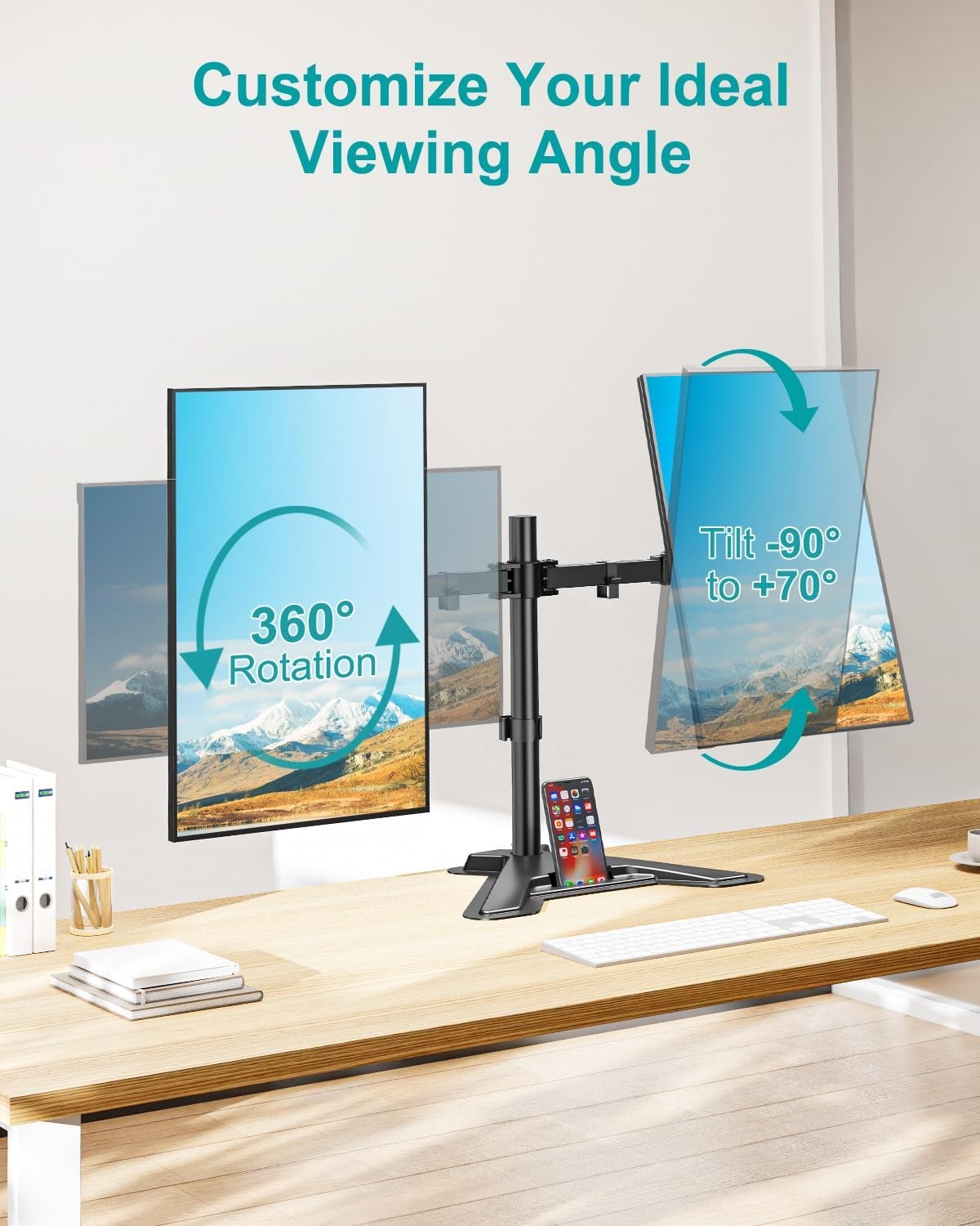 Dual Monitor Stand Free-Standing Full Motion Monitor Desk Mount Fits 2 Screens