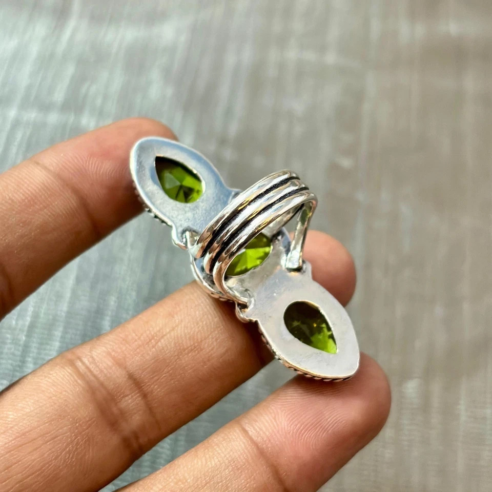 как выглядит Green Peridot Gemstone 925 Sterling Silver Ring Handmade Jewelry Ring For Gift фото