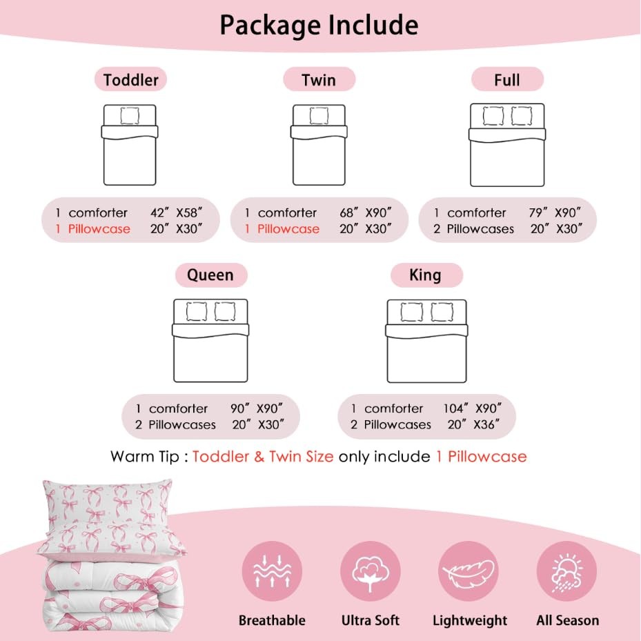 Ribbon Pink Bow Queen Comforter Set,Cute Pink Bows Bedding Set for Girls Teen...
