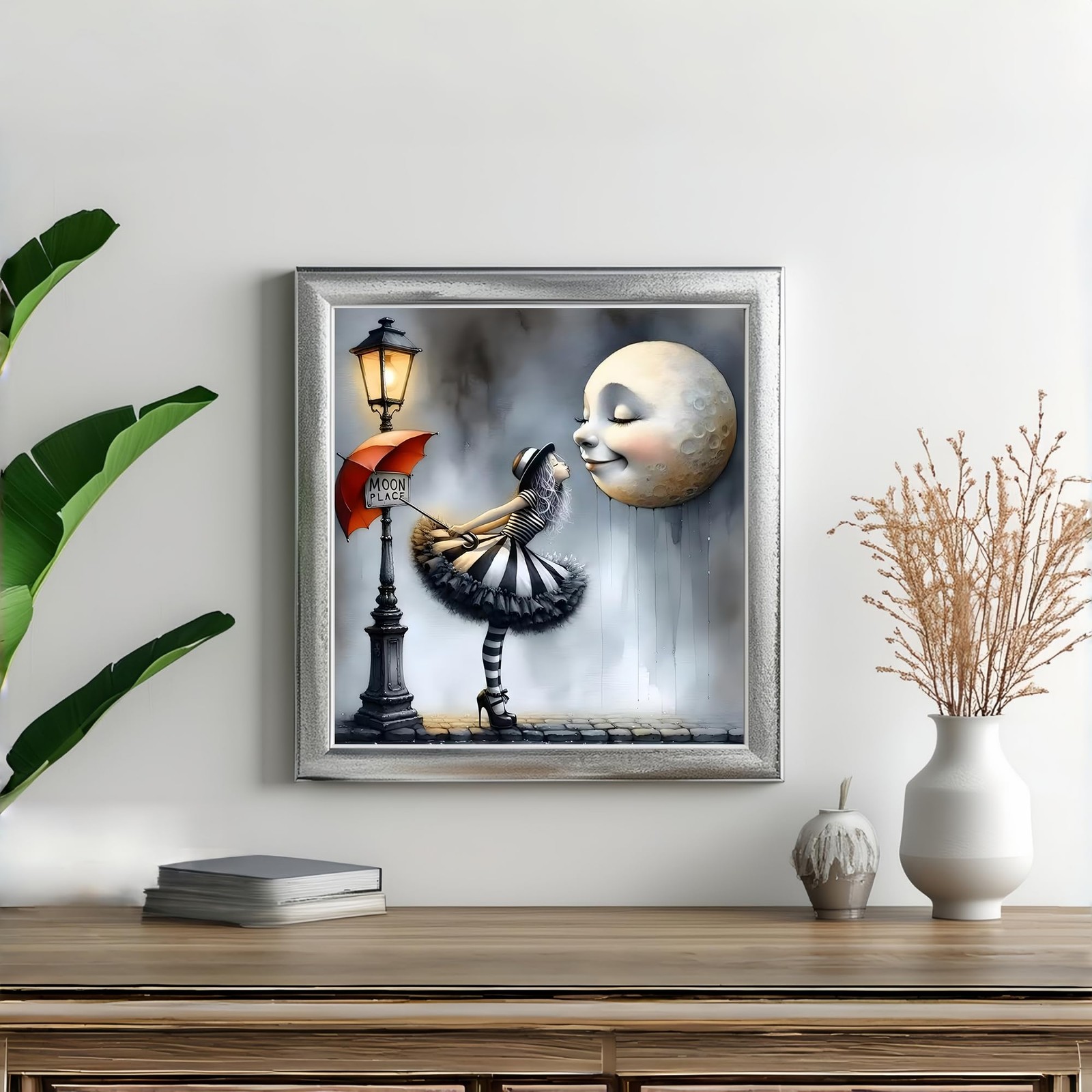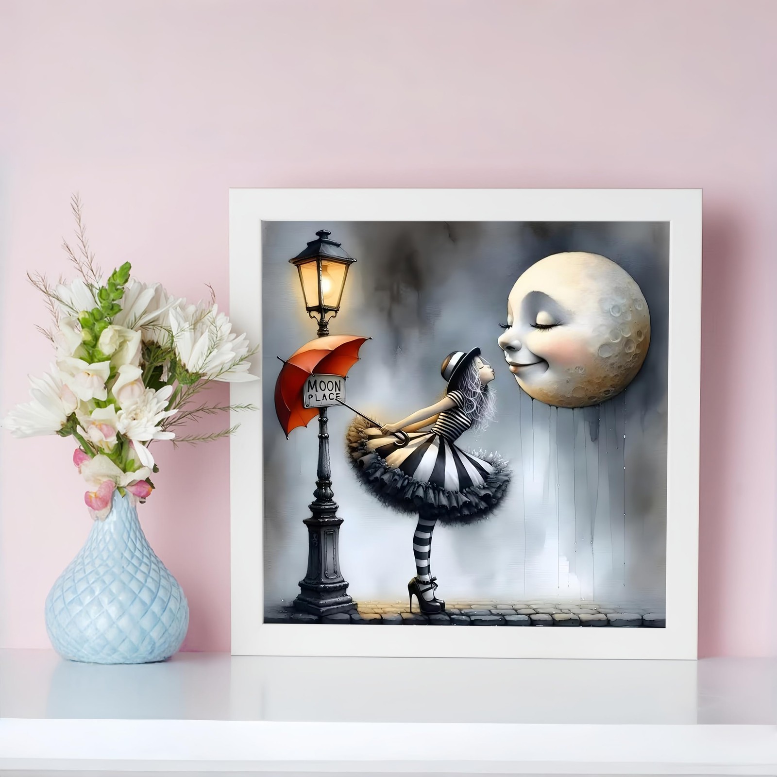 Diamond Art Kits for Adults Girl Kissing The Moon, DIY 5D Diamond Painting Ki