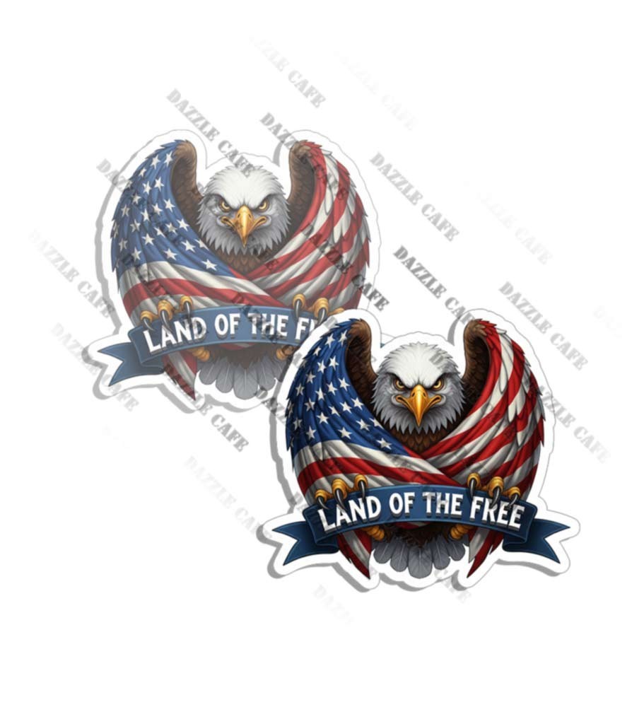 Bald Eagle American Flag Decals LAND OF THE FREE Stickers Made in USA 2 PACK