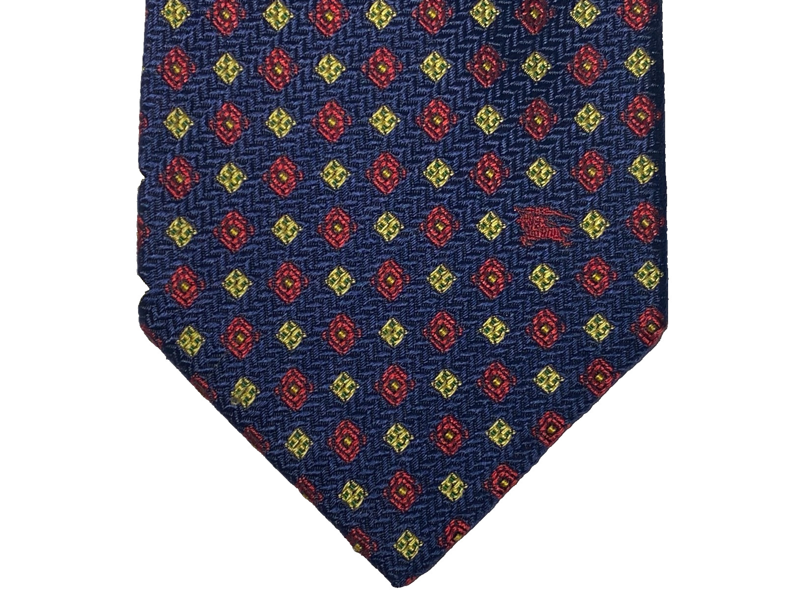 Burberry London Tie Dark Navy Blue Geometric Pattern Silk Necktie 59 x 3.75