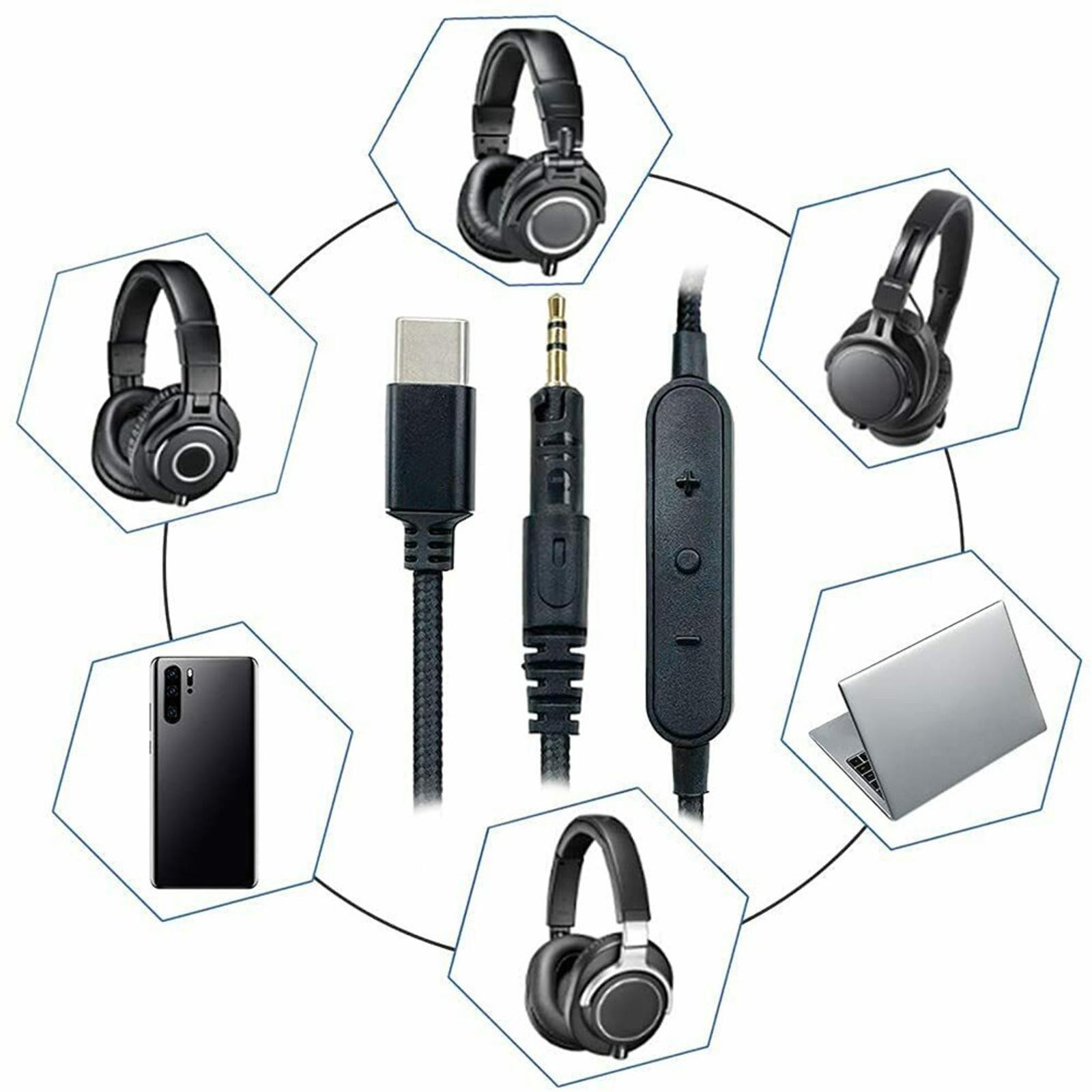 4.9ft USB-C To 2.5mm M OFC Earphone Cable For Audio-Technica M40X M50X M60X M70X