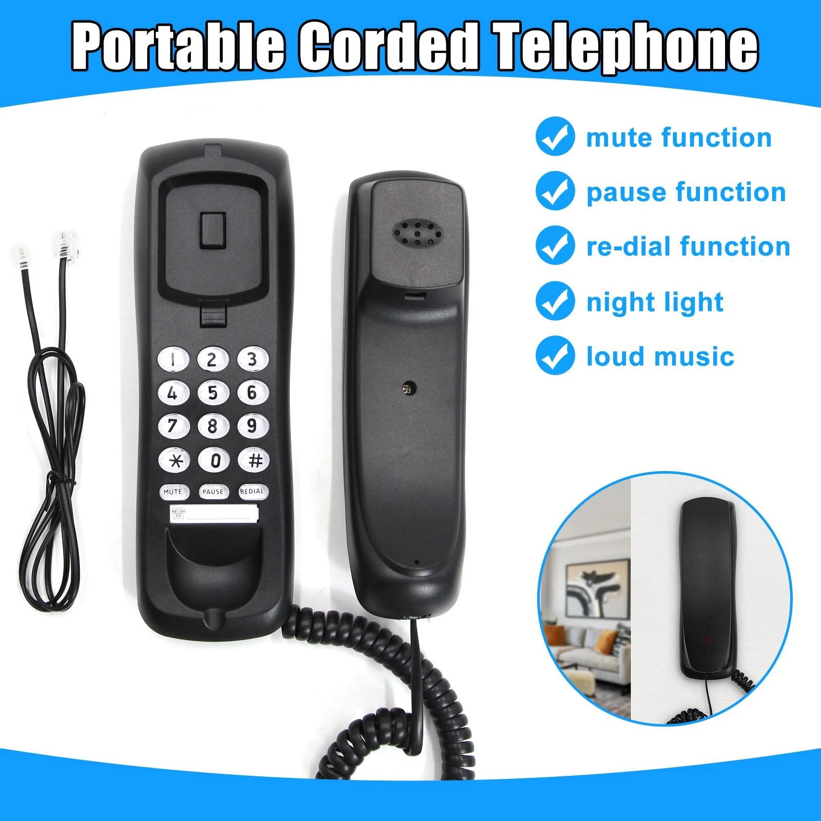 Good Quality Black Telephone Desktop Corded Landline Mini Phone For Home Office