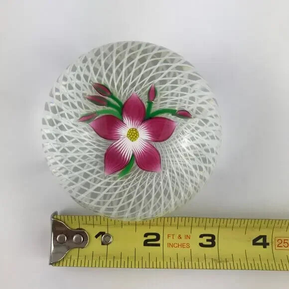 как выглядит Perthshire 1984D Floral Spray Pink Lampwork Flower Spiral Latticinio Paperweight фото