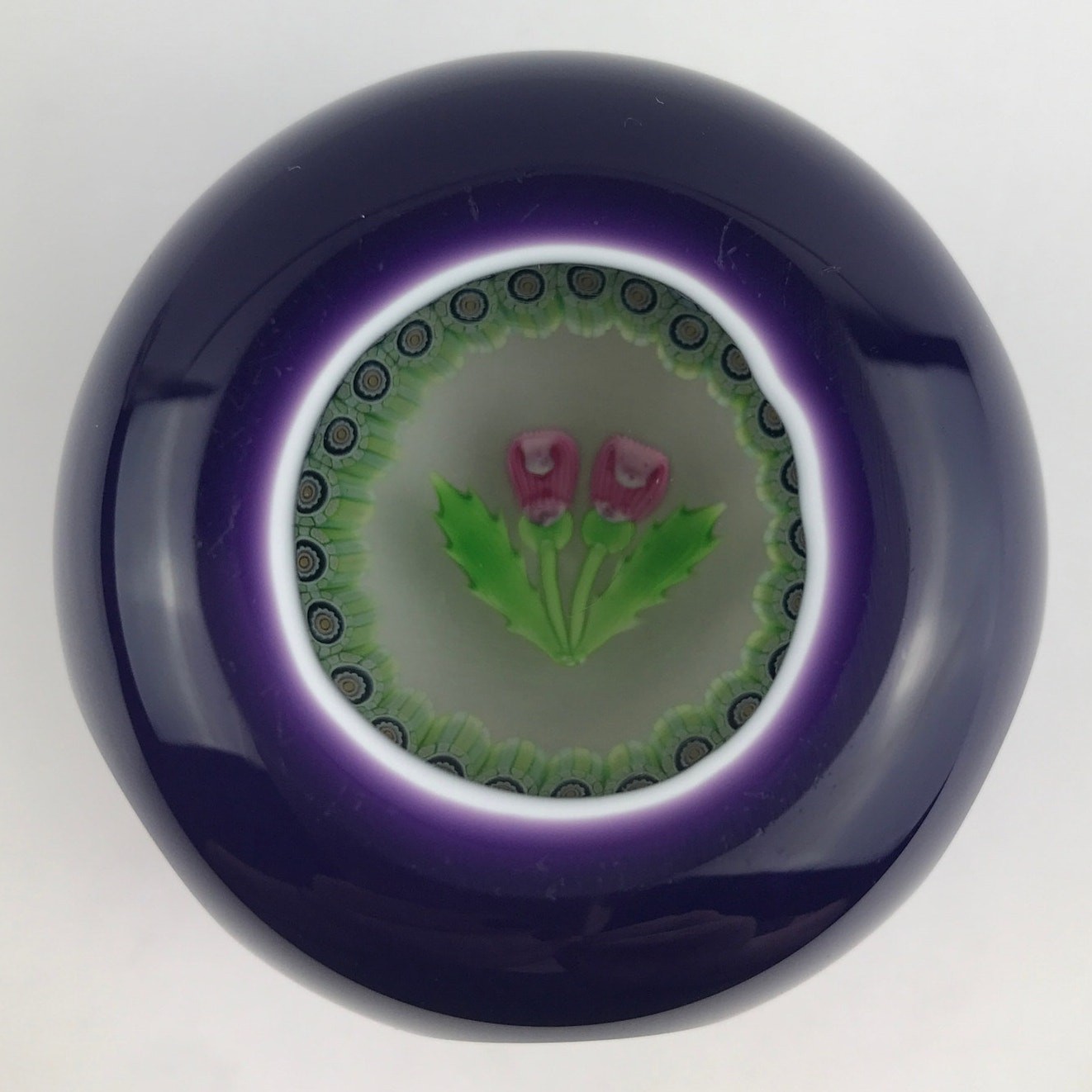 Perthshire 1988C Double Overlay Scottish Thistle Millefiori Amethyst Paperweight