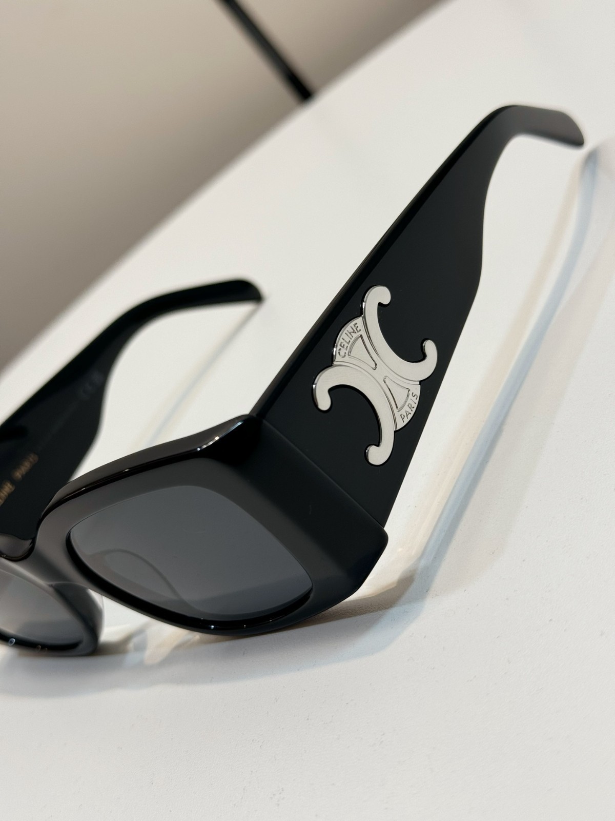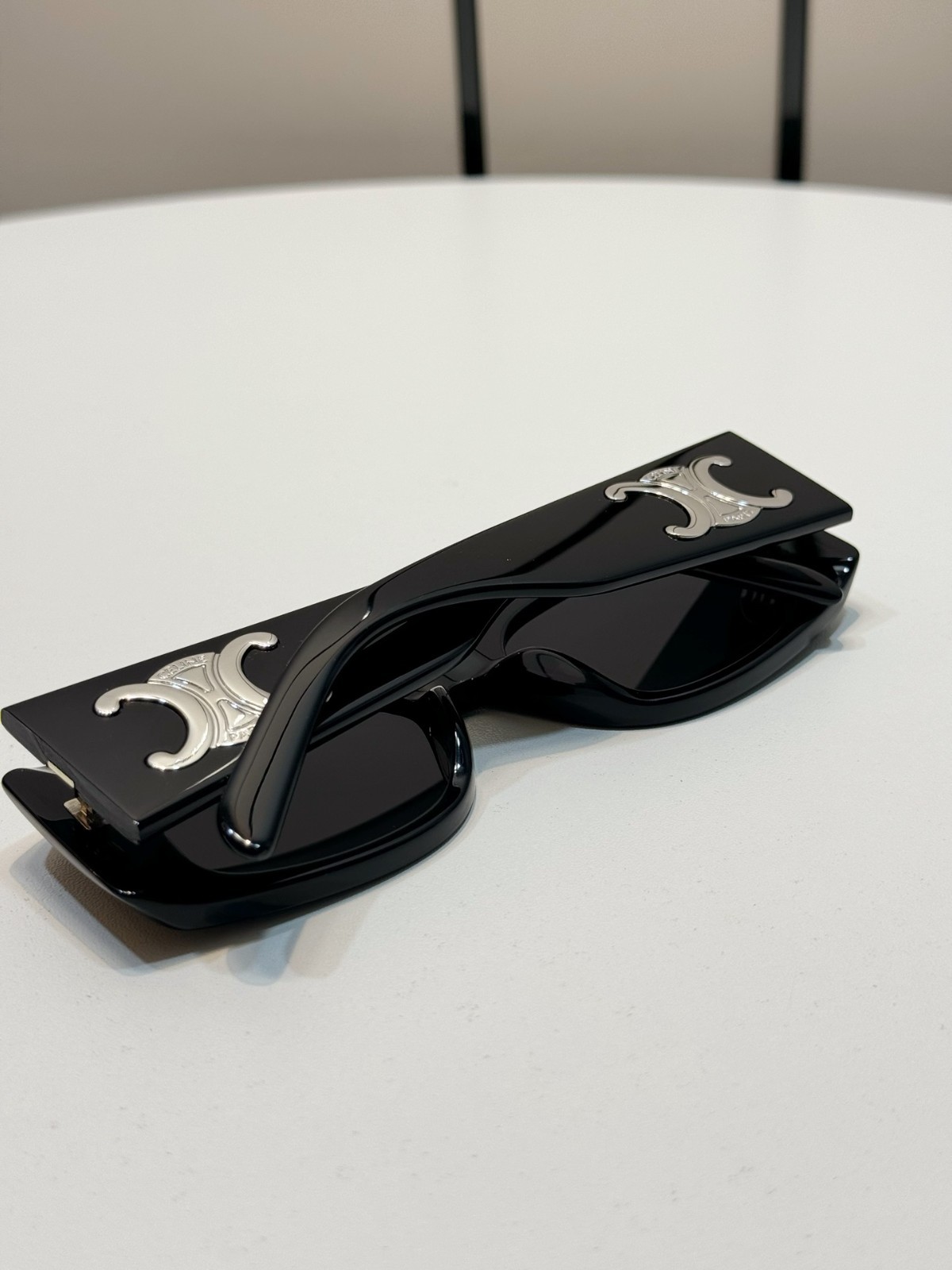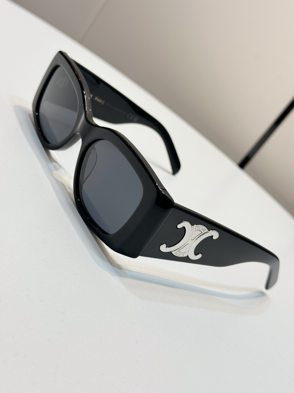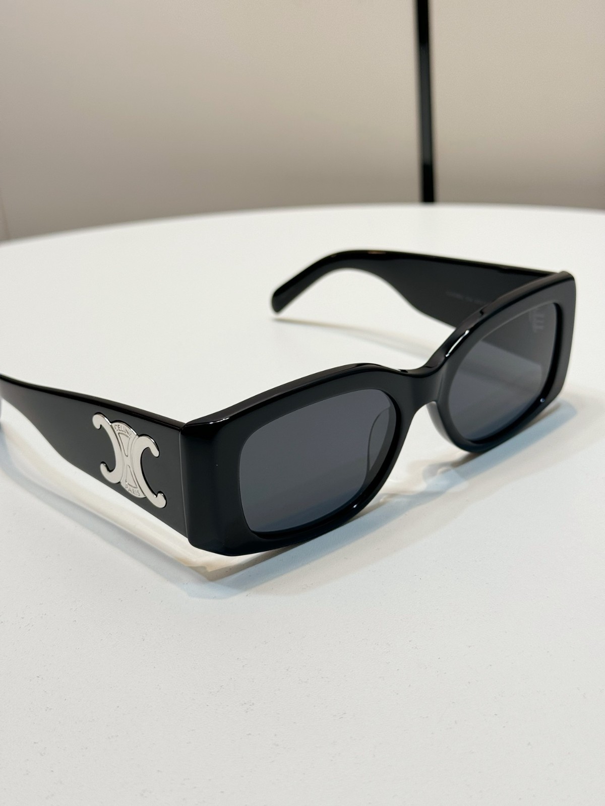 как выглядит New Celine CL40282U Silver Triomphe Black/Gray Lens Unisex Rectangle Sunglasses фото