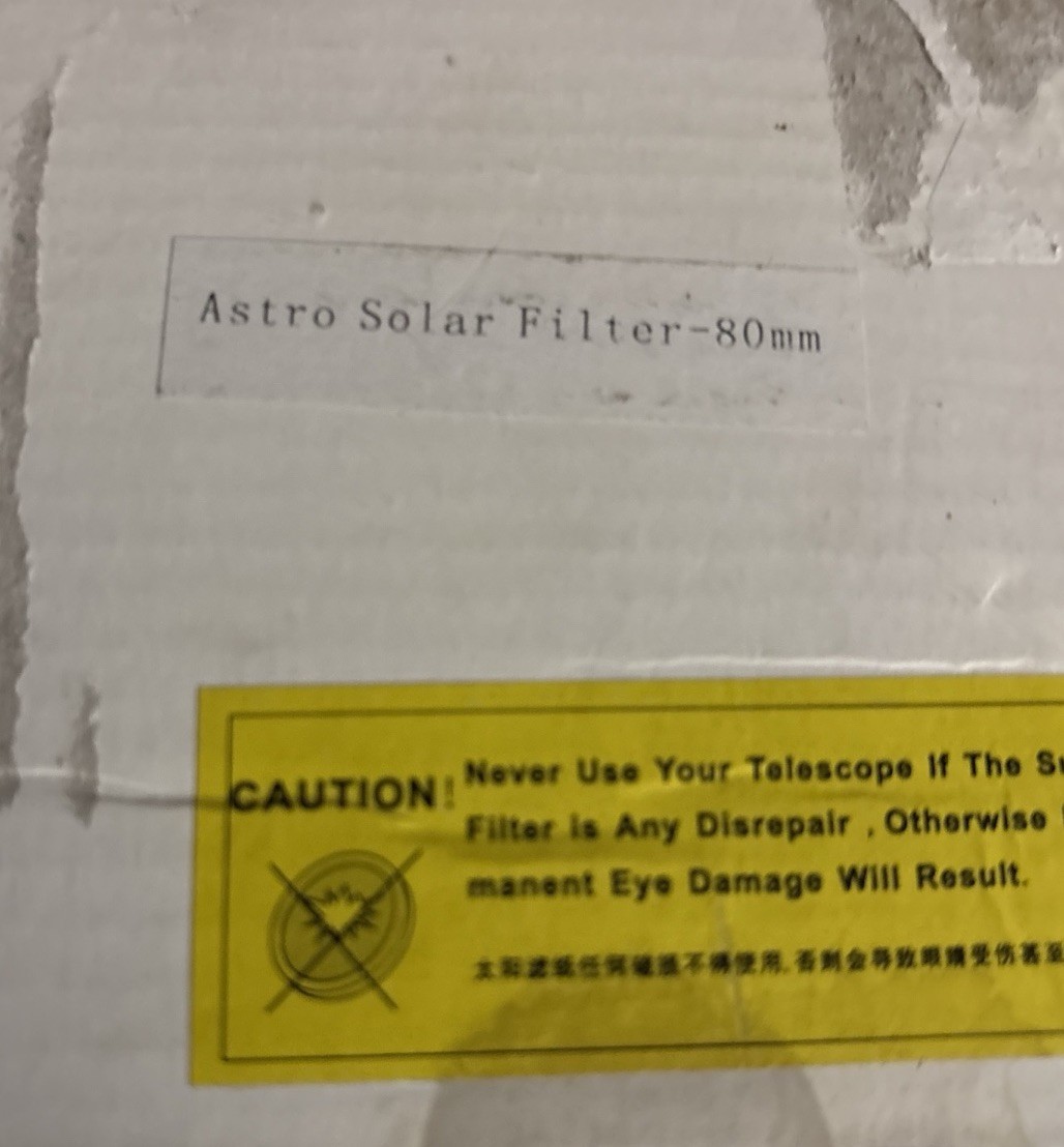 Astronomical Telescope Adjustable Solar Filter 80mm - for Sun Observing