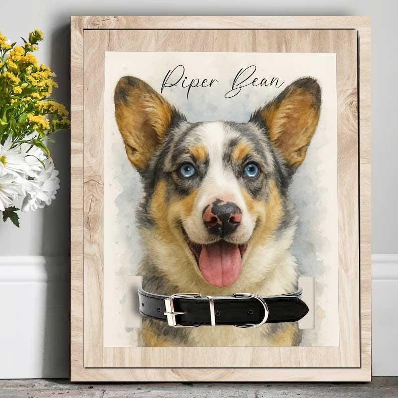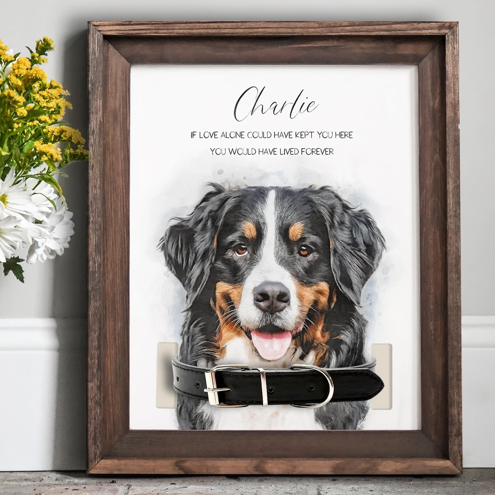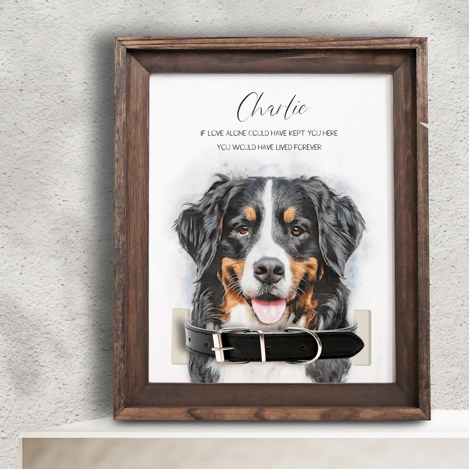 Custom Dog Memorial Frame, Collar Holder, Engraved Wood