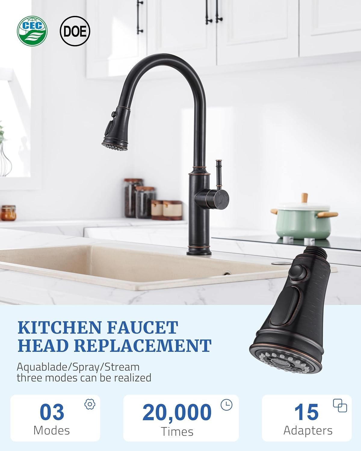 Kitchen Tap Spray Head Replacement Set - Includes 15 Adapters,Pull-Out Spray Gun