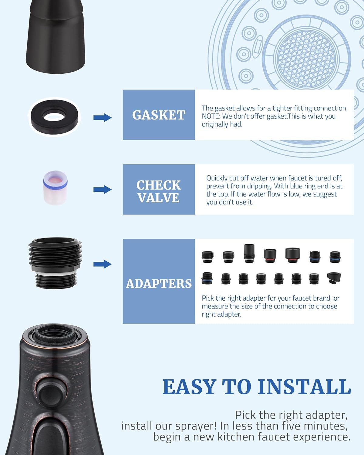 как выглядит Kitchen Tap Spray Head Replacement Set - Includes 15 Adapters,Pull-Out Spray Gun фото