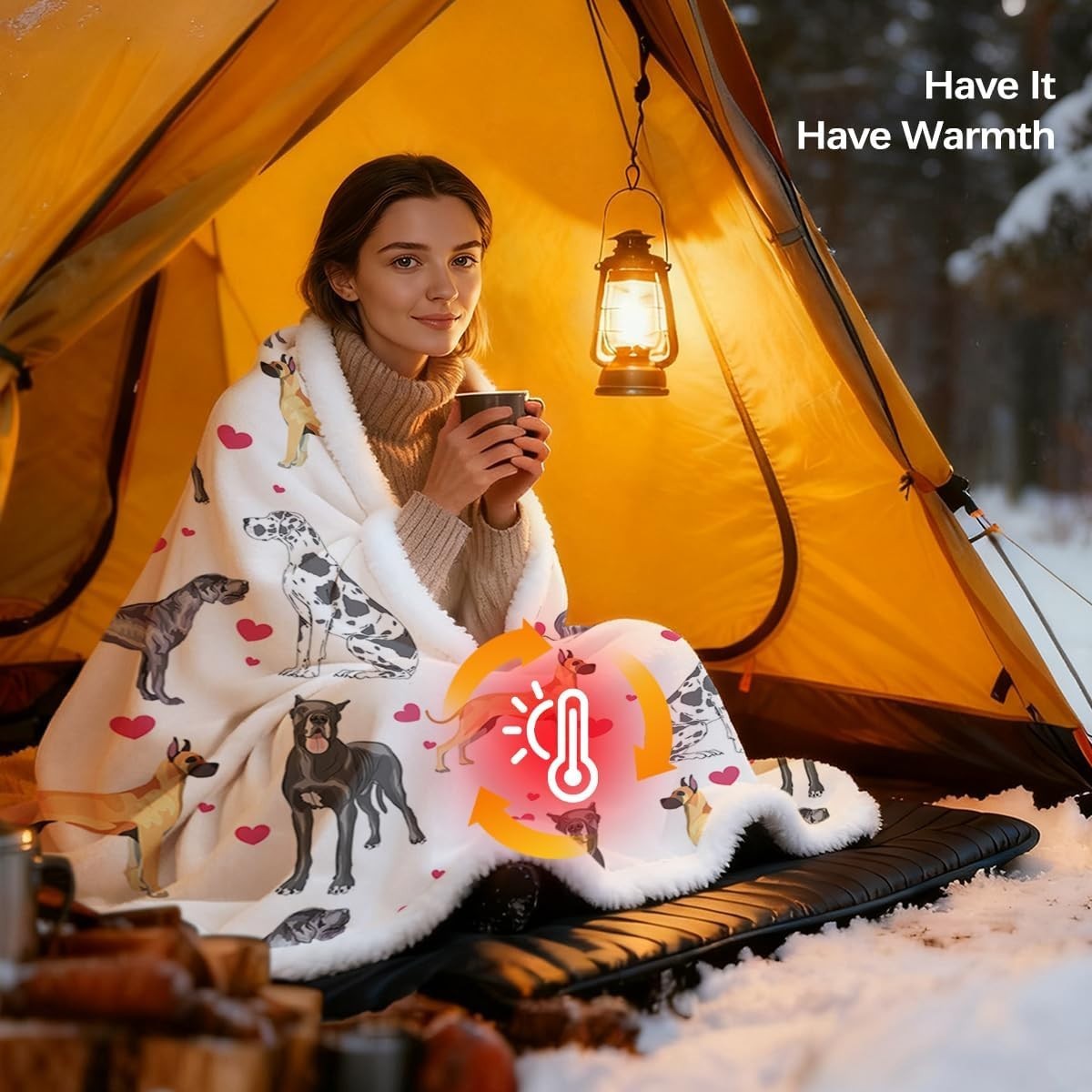 Great Dane Throw Blanket - Lightweight Sherpa with Red Heart Puppy Print, 50x60