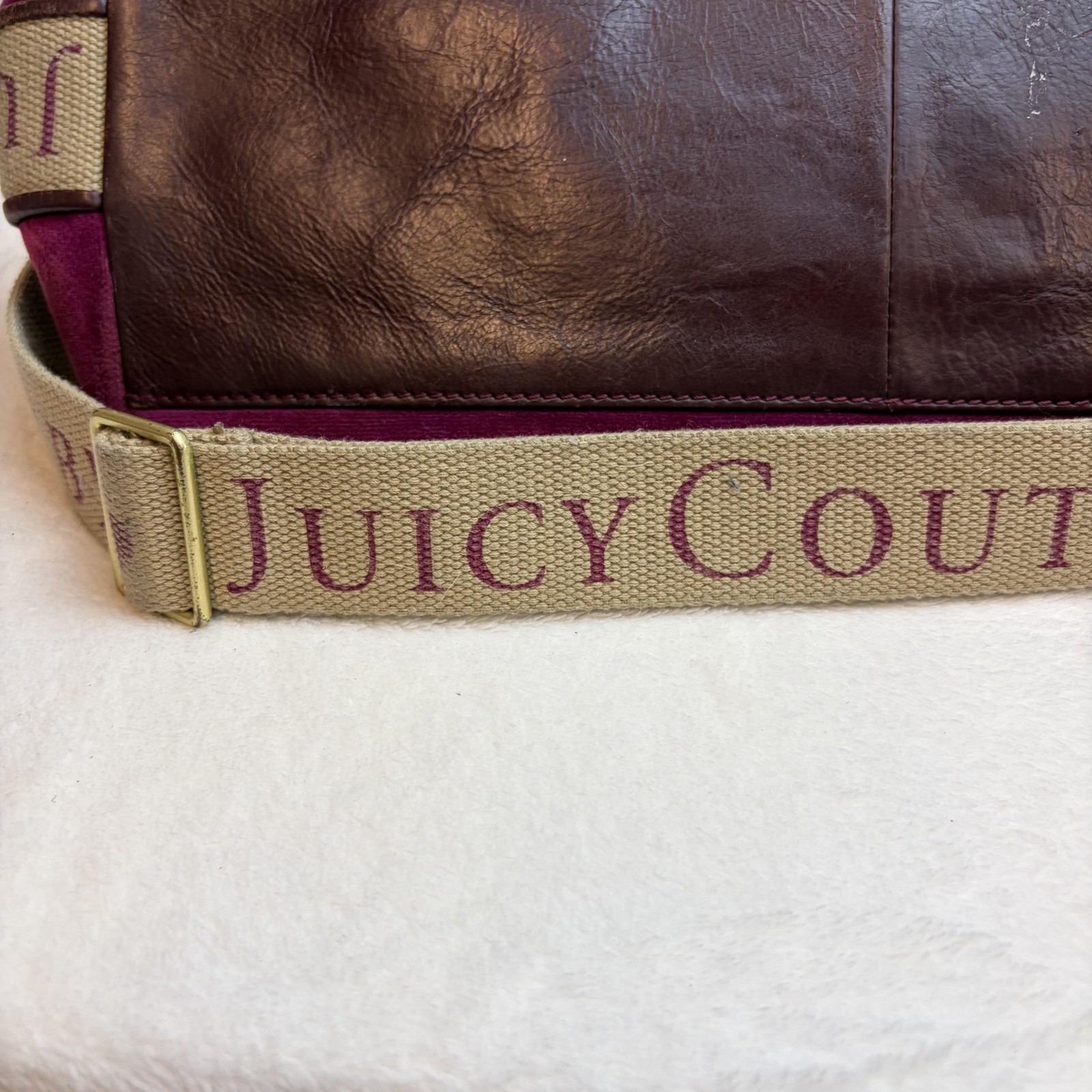 как выглядит Vintage Juicy Couture Baby Diaper Bag Purple Velour Heart Pocket Shoulder Tote фото