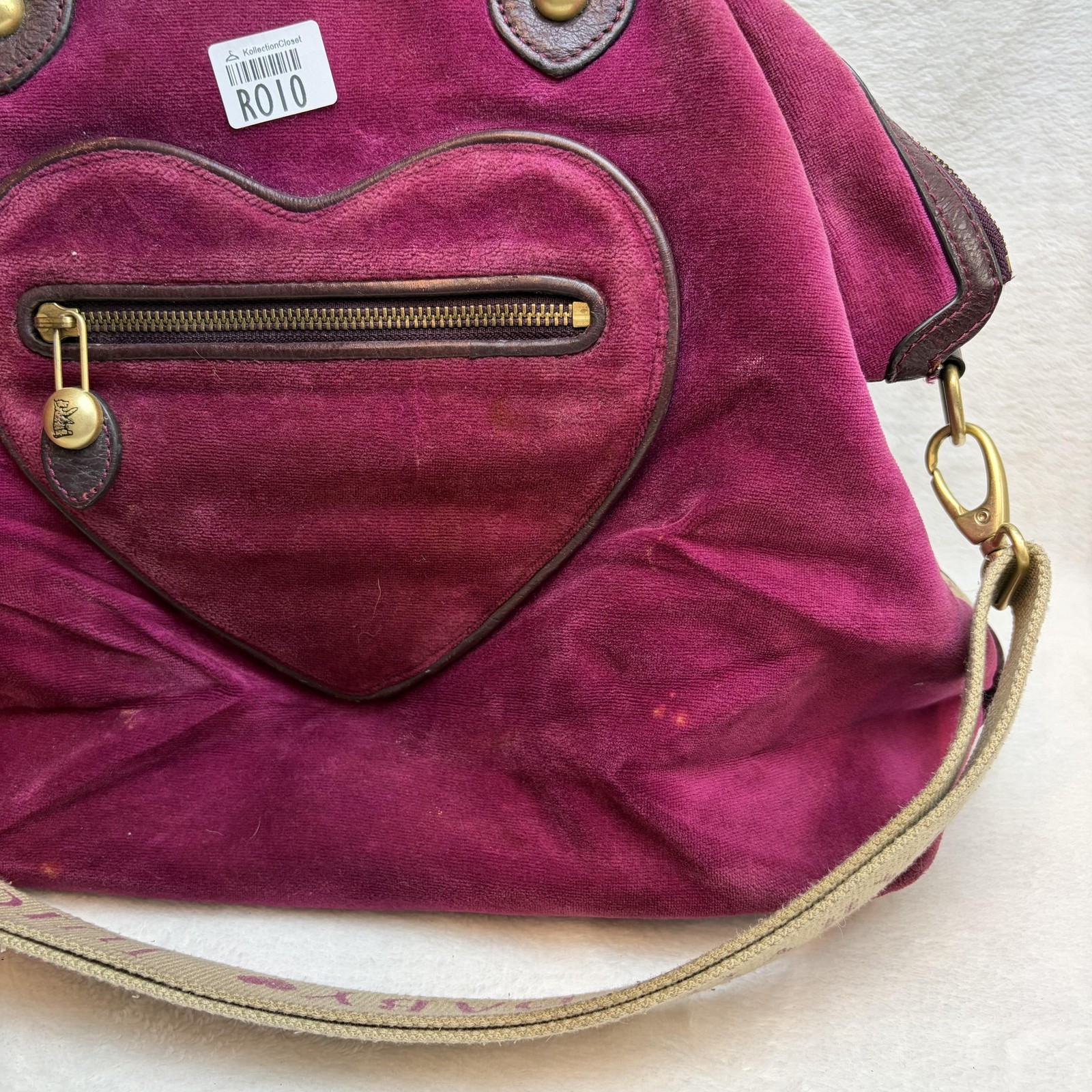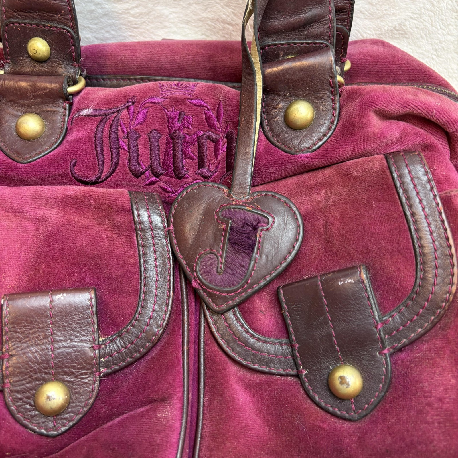 Vintage Juicy Couture Baby Diaper Bag Purple Velour Heart Pocket Shoulder Tote