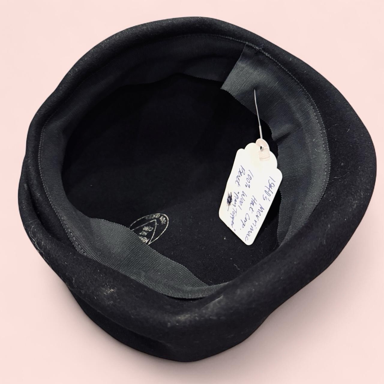 как выглядит Vintage Merrimac Hat Corp Black Wool Cap Beret Style 100 Wool Made USA фото