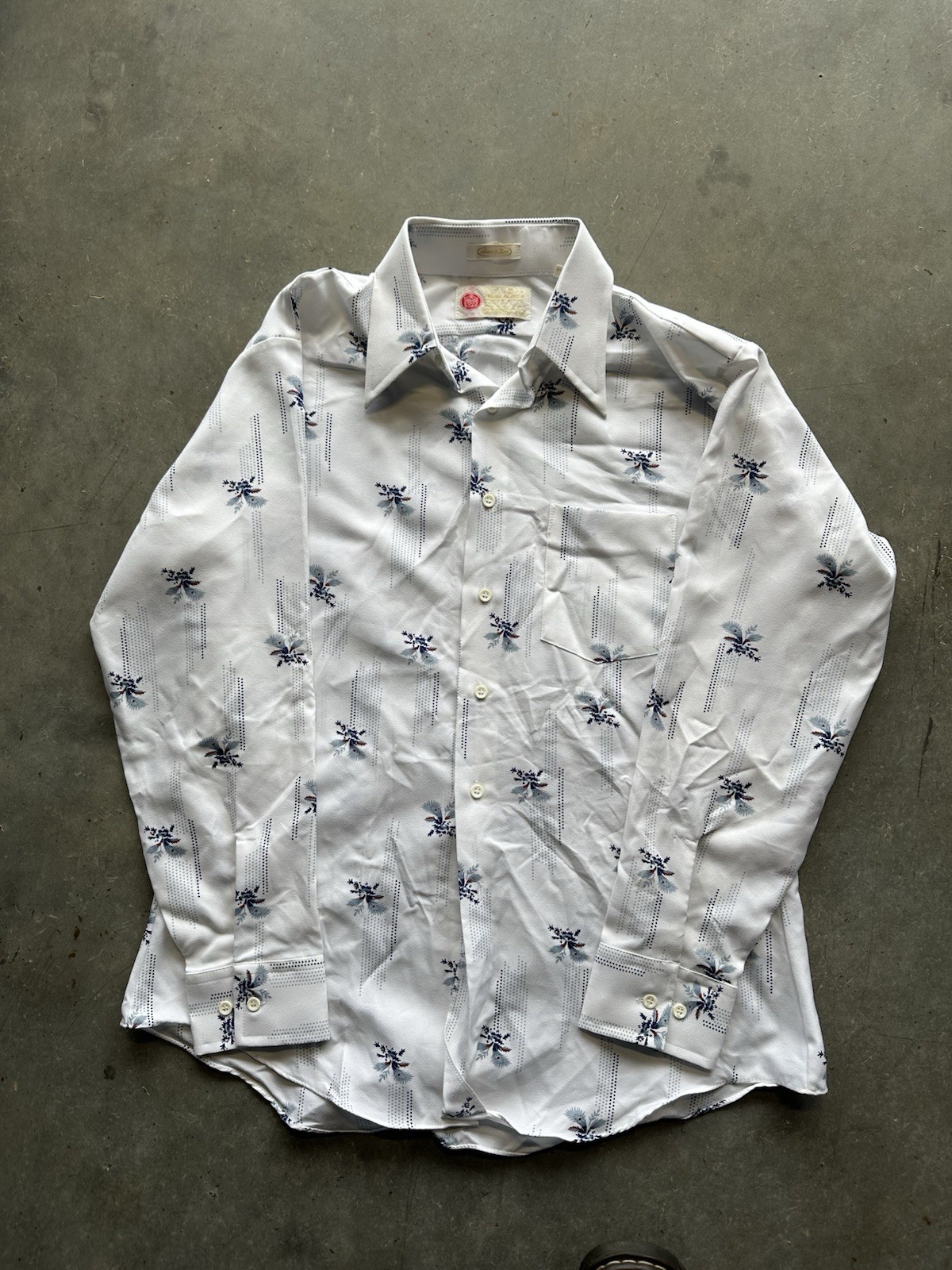 как выглядит Vintage 70s Sears Kings Road Button Up Disco Pattern Shirt Size Large Men s фото