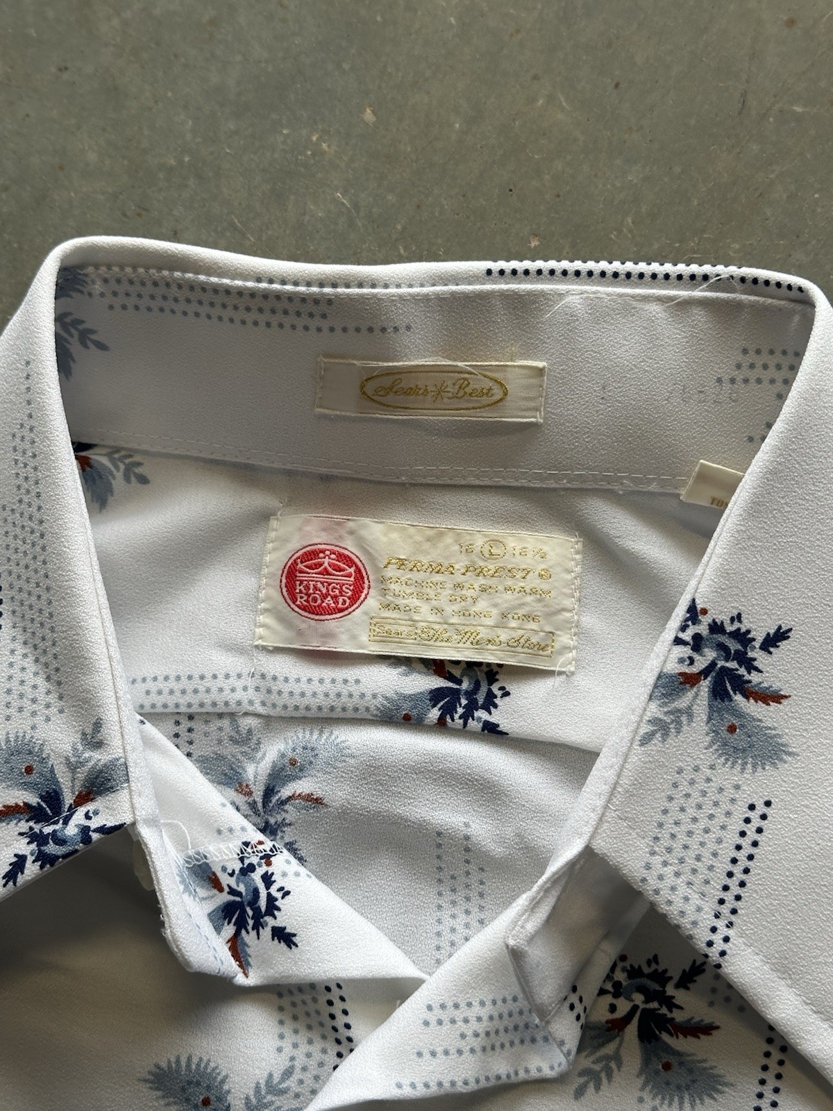 Vintage 70s Sears Kings Road Button Up Disco Pattern Shirt Size Large Men s