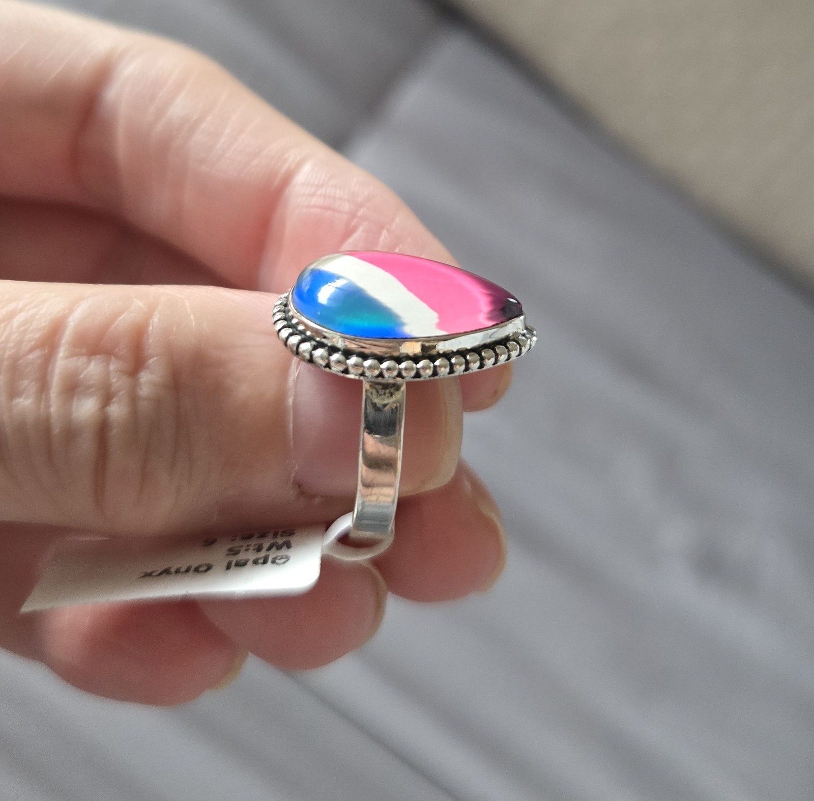 как выглядит Sterling Silver Aurora Opal Composite Ring, Size 6 фото