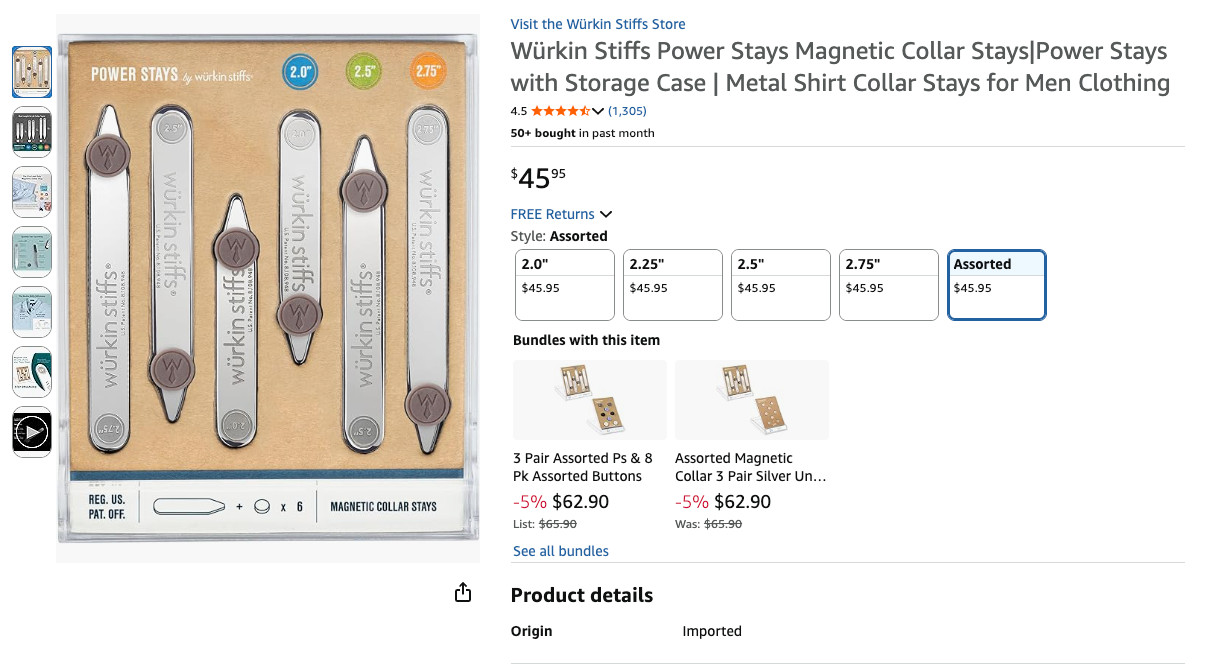 как выглядит W rkin Stiffs Power Stays Magnetic Collar Stays Power Stays with Storage Case фото