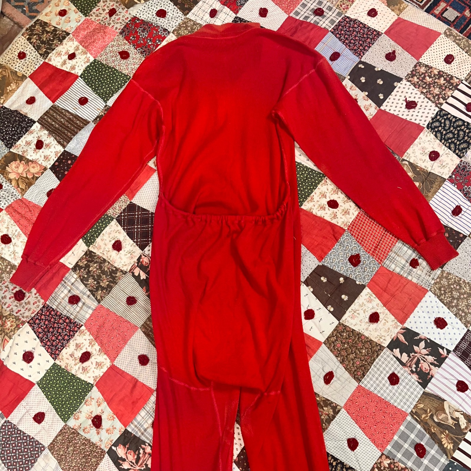 как выглядит Vintage 1940s Red Thermal Union Suit One Piece Long Johns Sleepwear Distressed фото