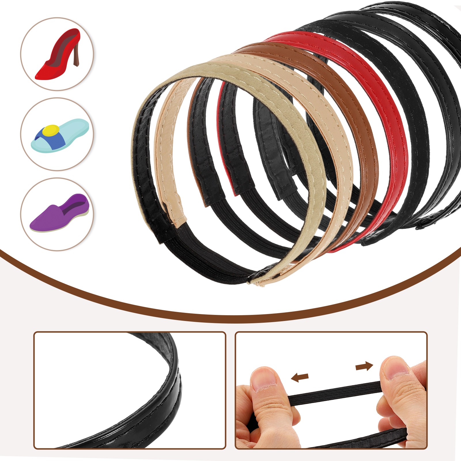 2 Pairs High Heels Shoe Straps Detachable Elastic Heel Strap, Glossy Black